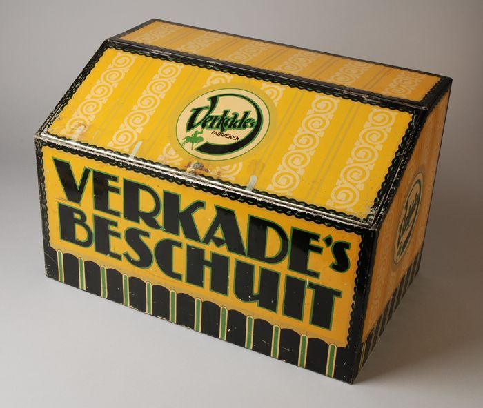 Geel winkelblik "VERKADE'S BESCHUIT"