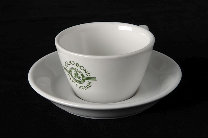 Witte kop en schotel met groen logo Volksbond Rotterdam