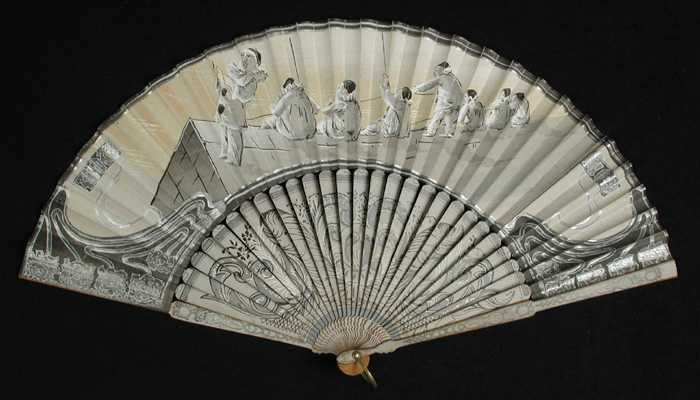 Vouwwaaier, montuur van gesneden en beschilderd ivoo...