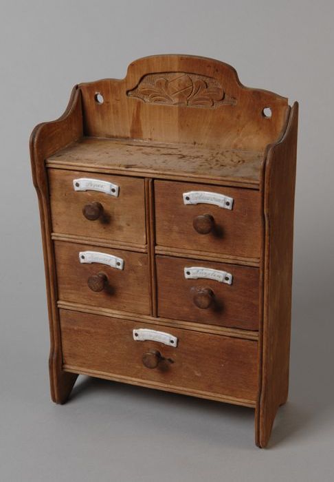 Kruidenrek in de vorm van kastje met vijf laden met ...