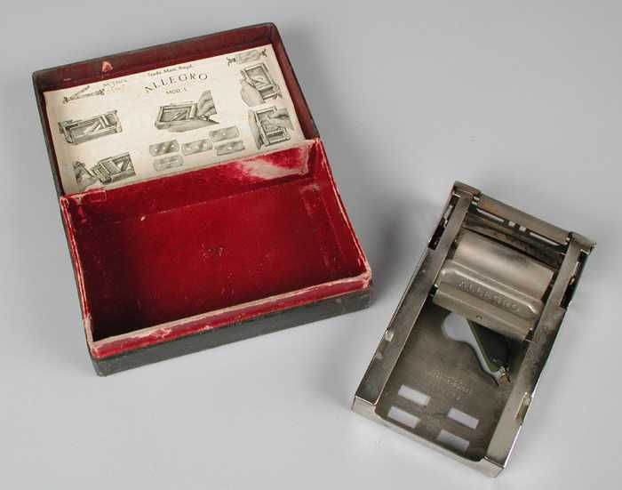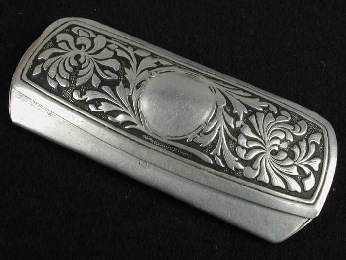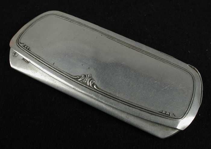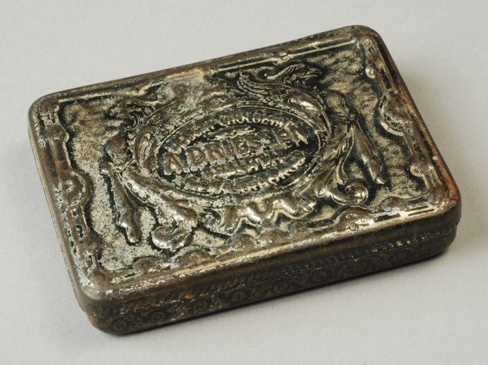 Klein rechthoekig blik met scharnierend deksel, "A. ...
