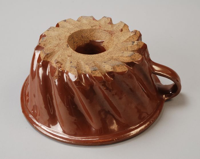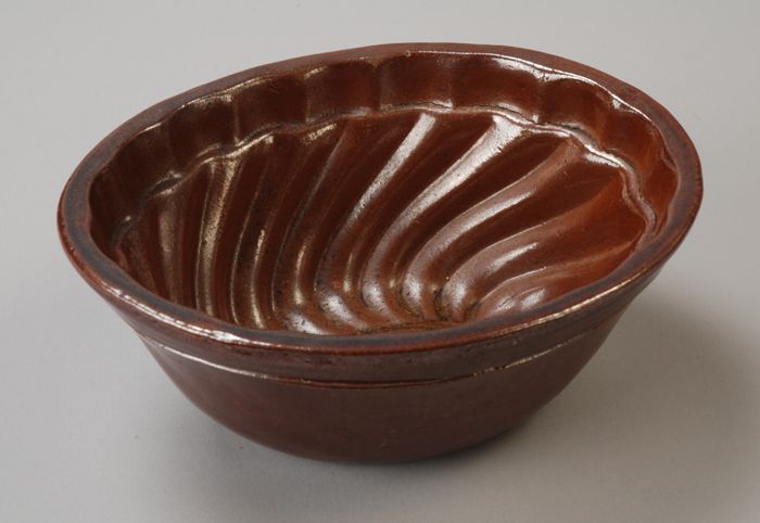 Bruin geglazuurde aardewerk puddingvorm met gedraaid...