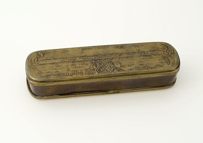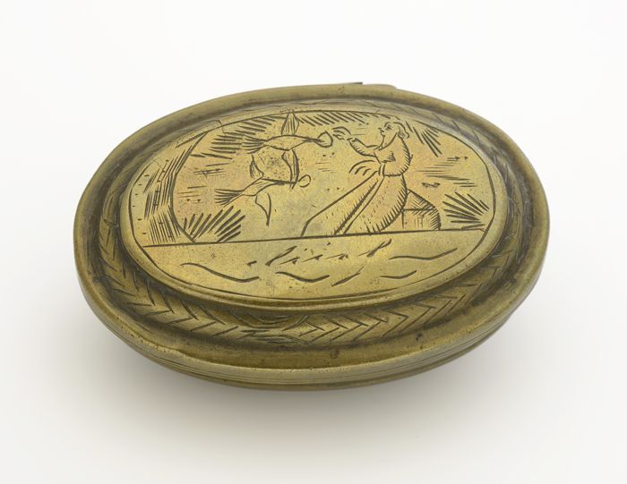 Koperen snuifdoos of tabaksdoos, met profeet Elia en...