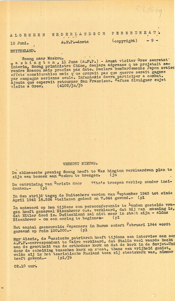 Vel: Algemeen Nederlandsch Persbureau, mededelingen,...