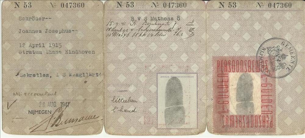 Persoonsbewijs op naam van Schröder, Joannes Josephus