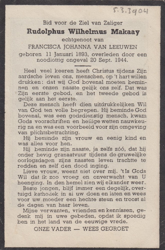 bidprentje Rudolphus Wilhelmus Makaay