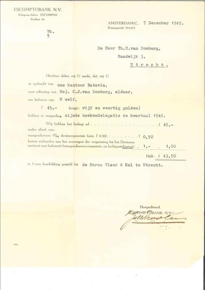Overboeking 45 gulden van mej. C.J. van Domburg te B...