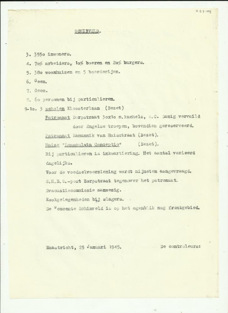 Rapport 25 januari 1945 bezoek Schinveld