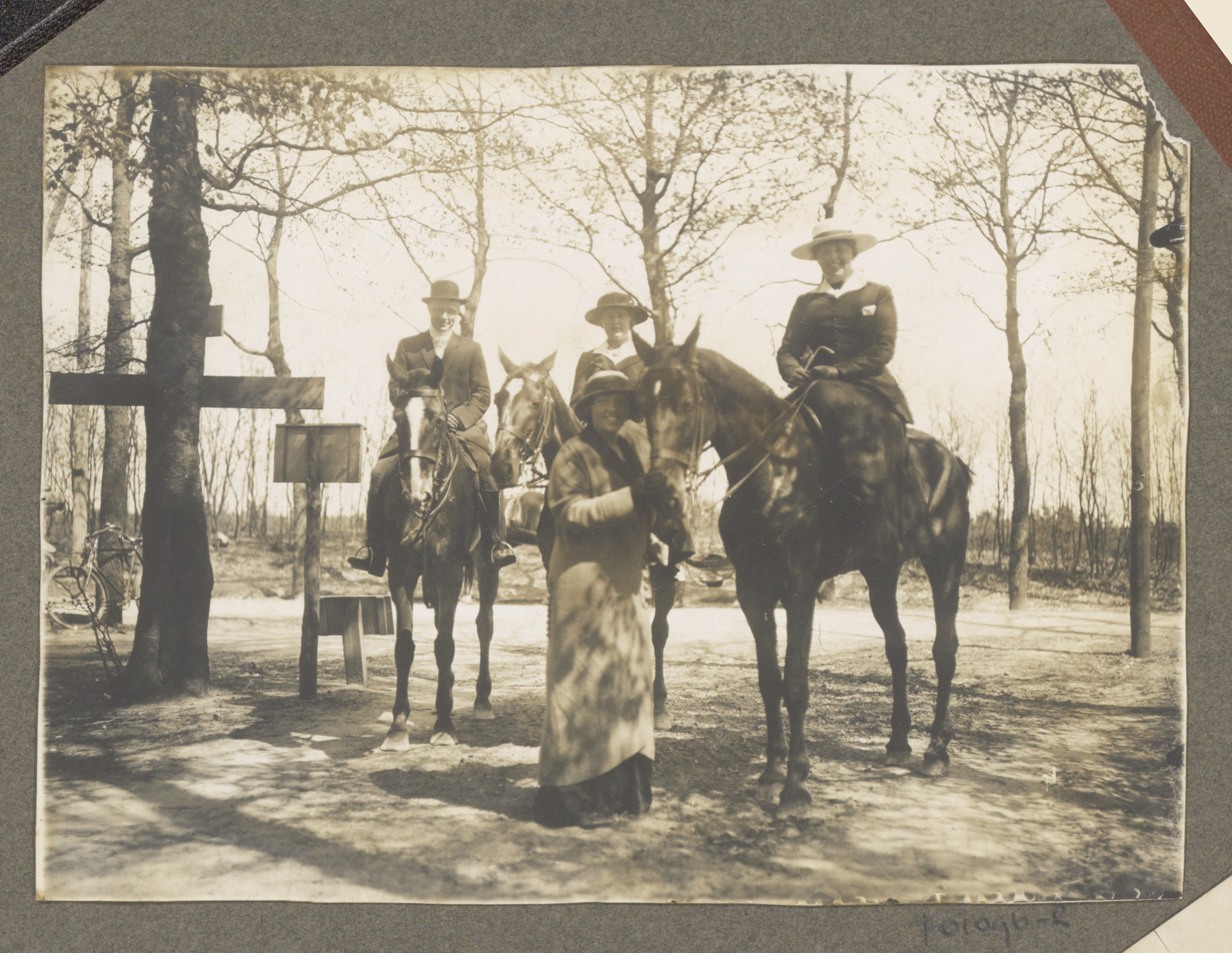 Vrouw met kind bij twee ruiters, vermoedelijk op Kon...