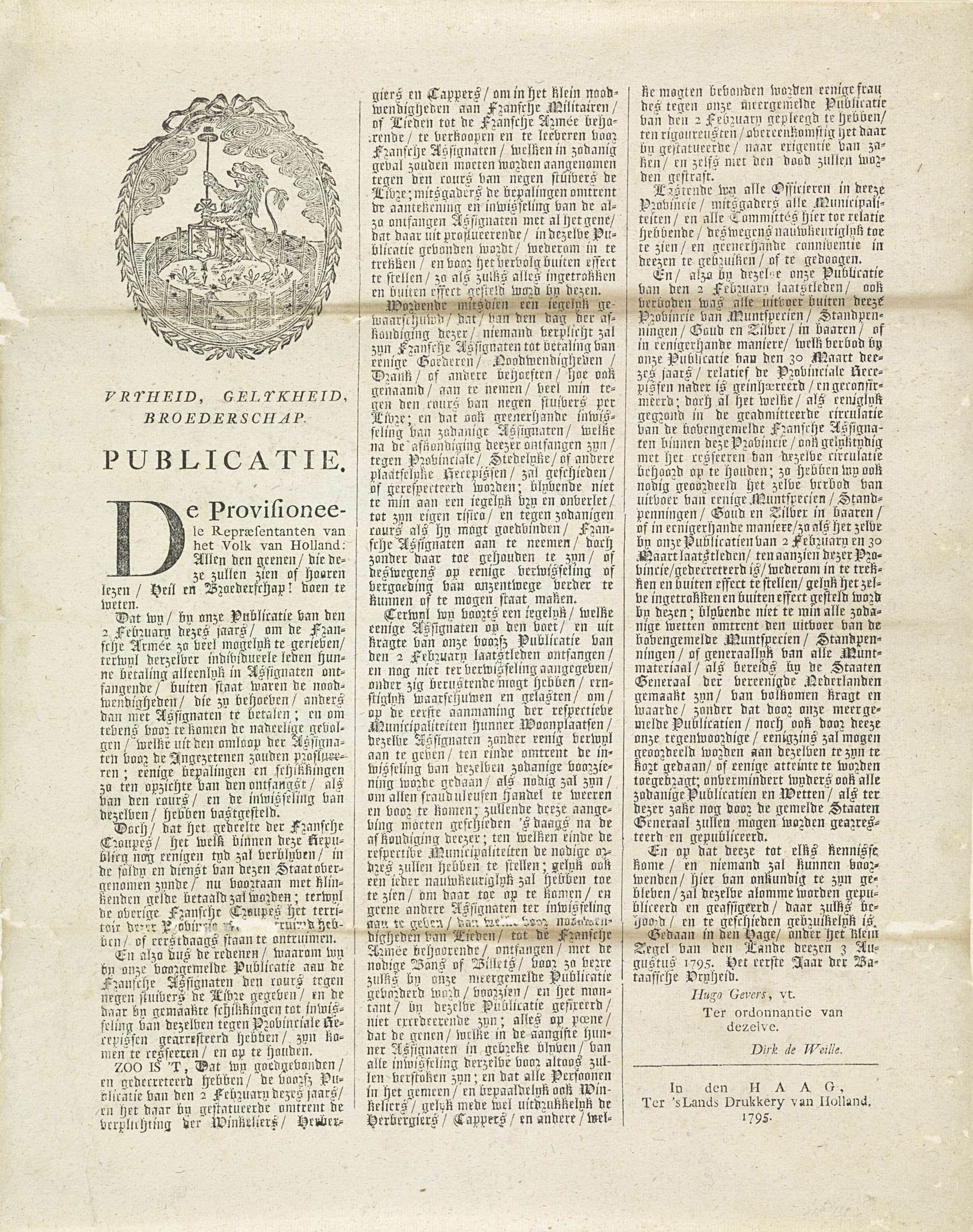 Publicatie waaarin het decreet van 4 februari 1795 o...