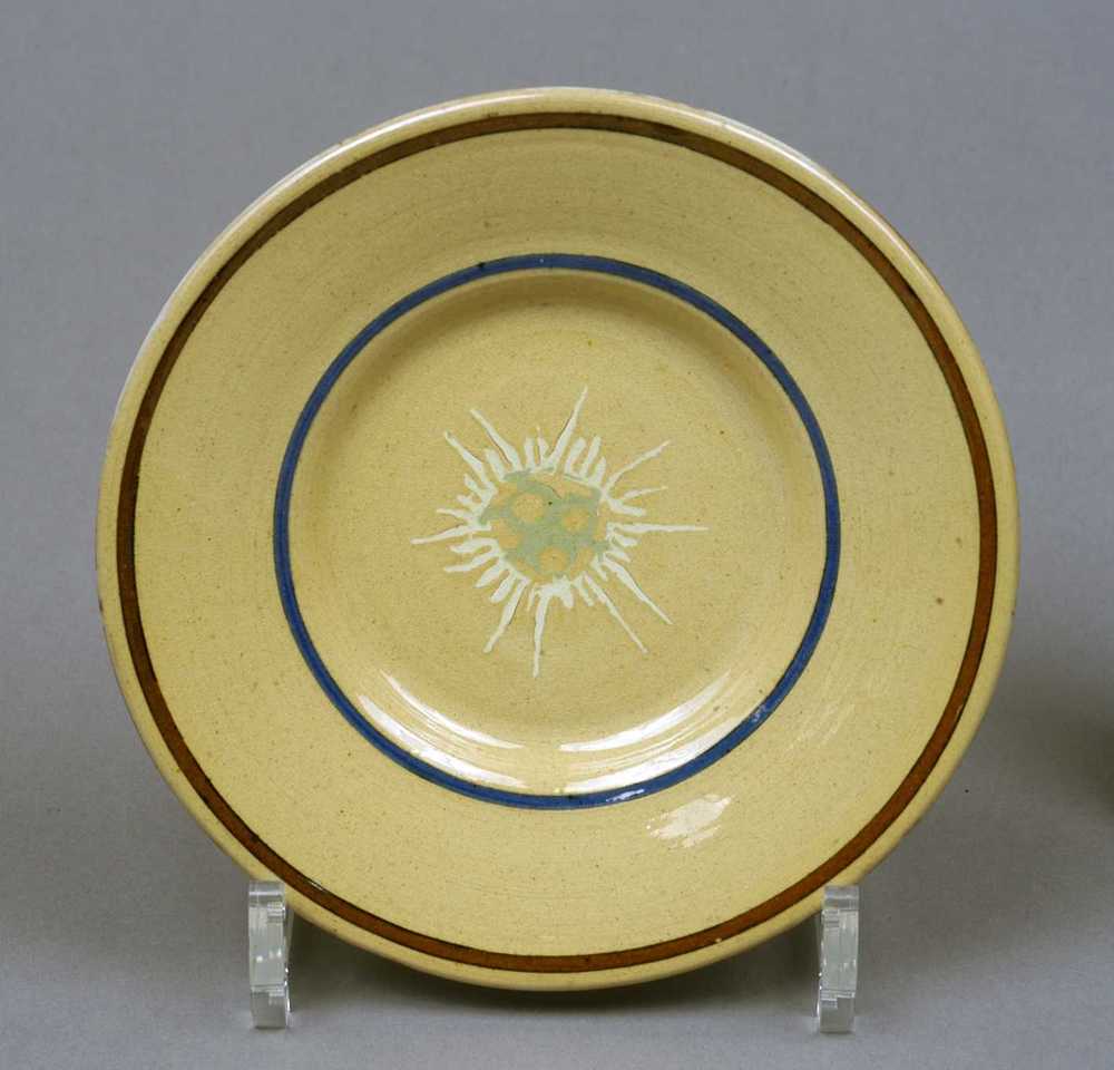 bord of schotel van keramiek, geel/bruin van kleur.