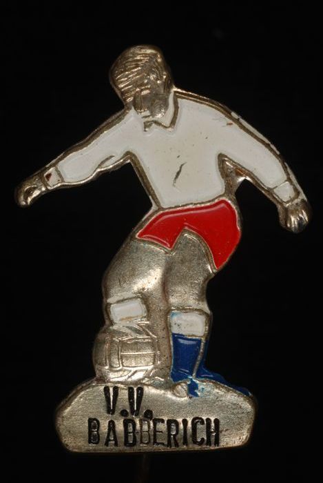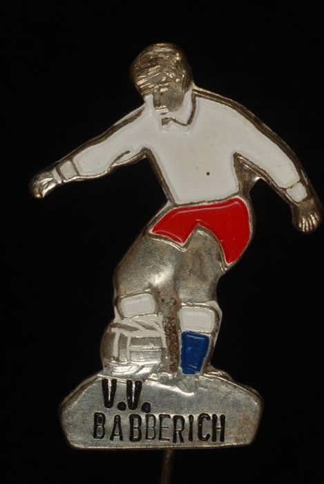 Reclamespeldje met voetbalspeler, "V.V. Babberich"