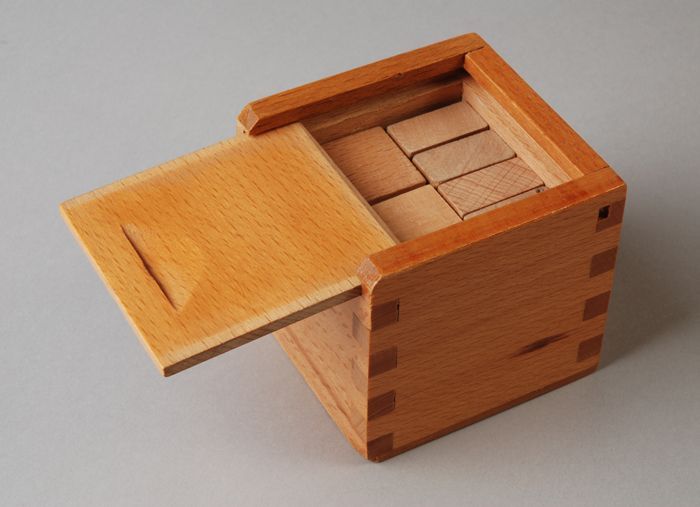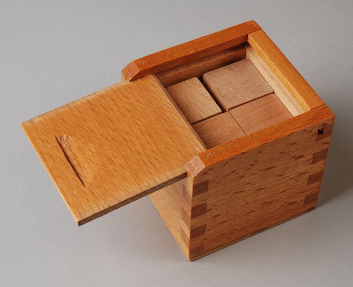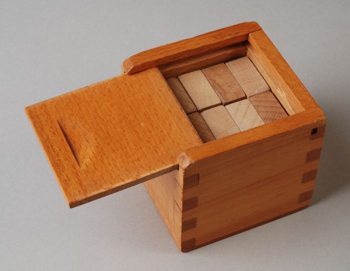 Langwerpige blokkendoos met schuifdeksel waarin hout...