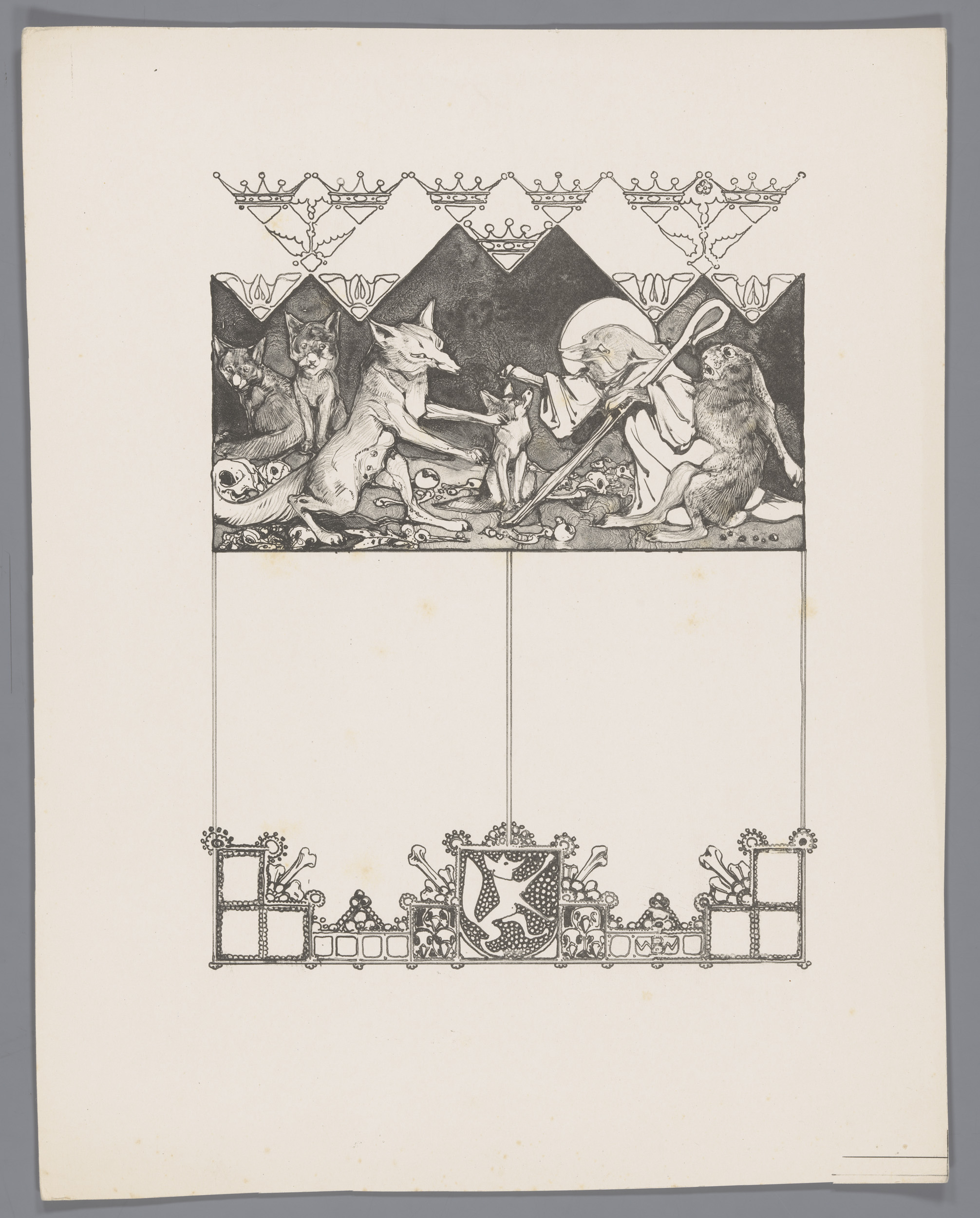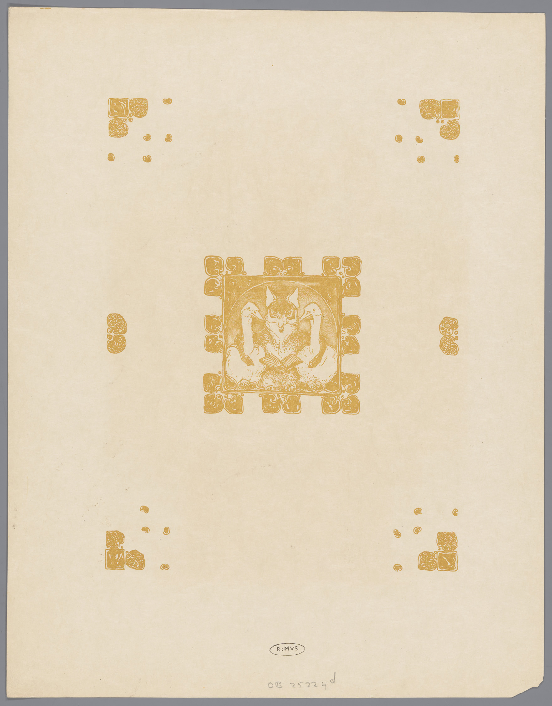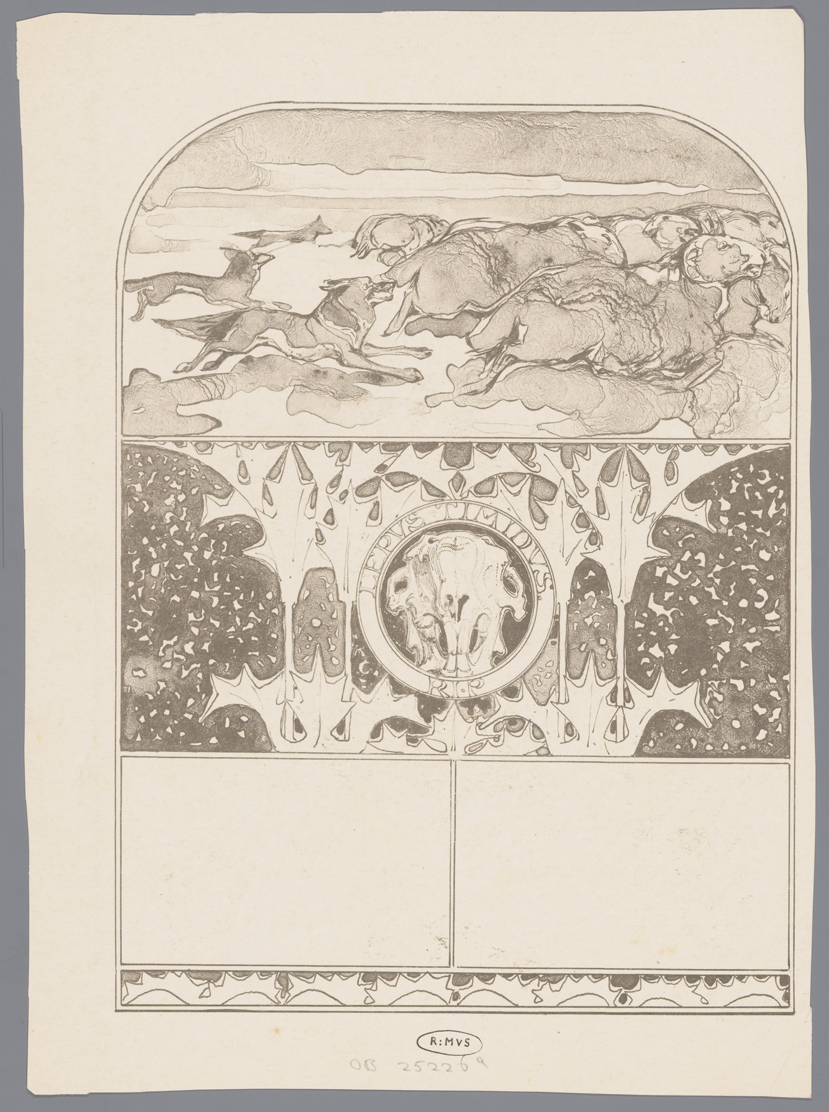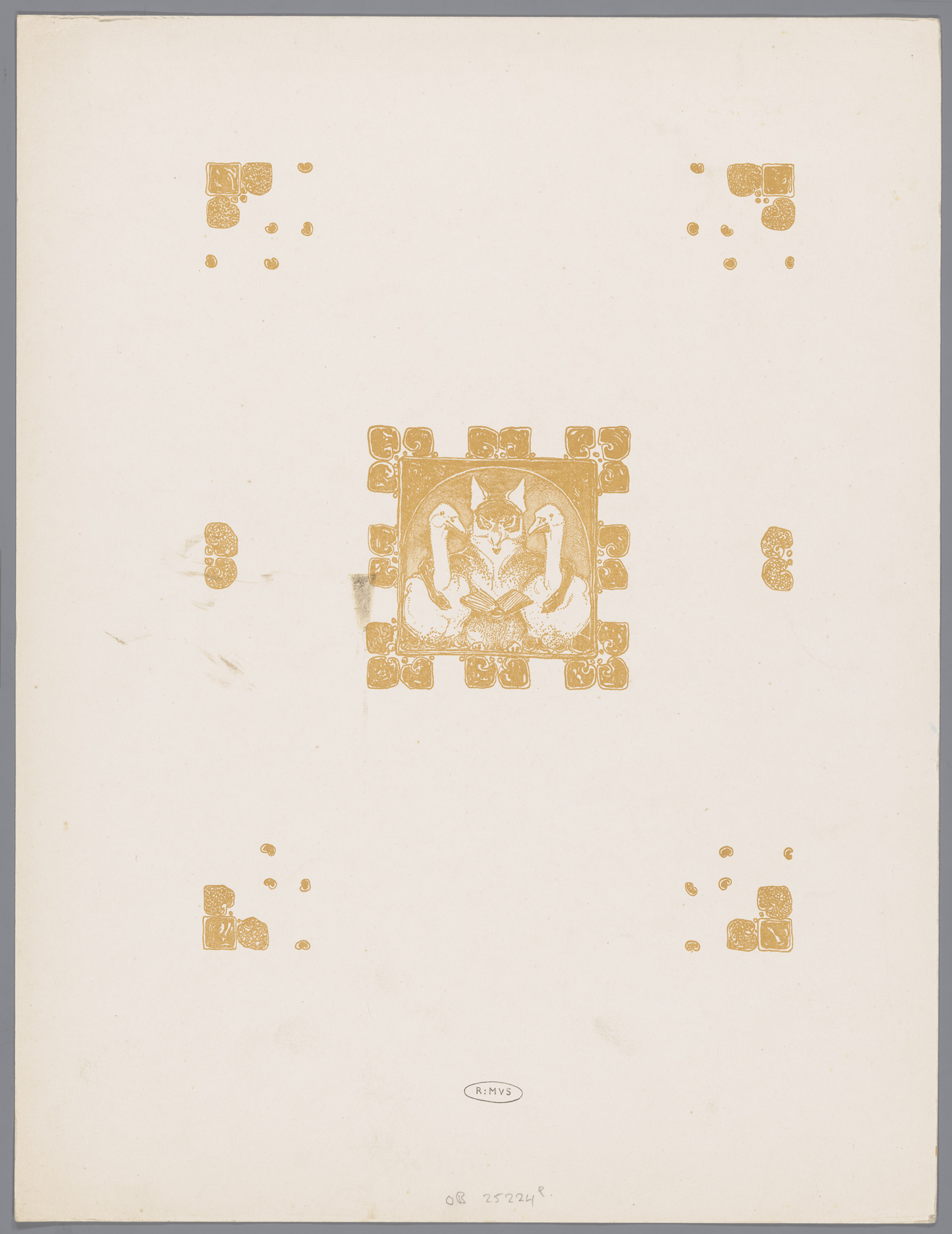 Ornamentiek en een vos (Reinaert) met twee ganzen