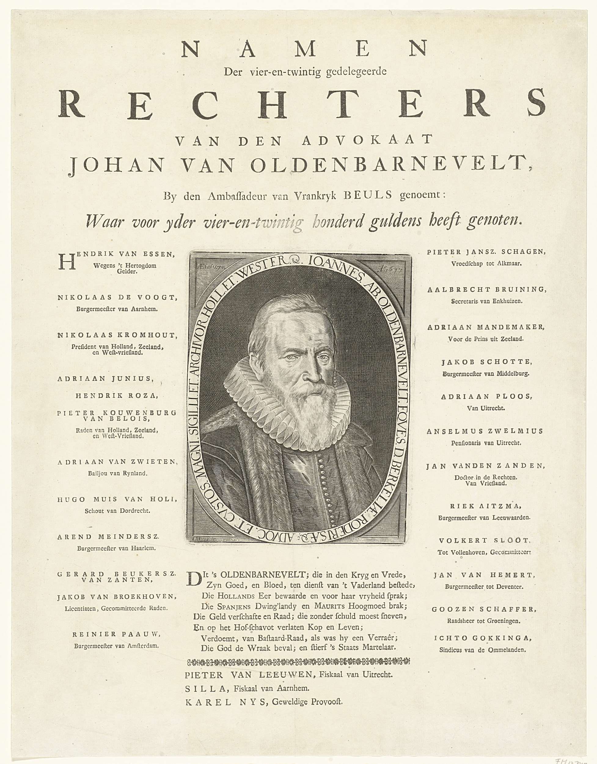 Portret van Johan van Oldenbarnevelt, omringd door d...