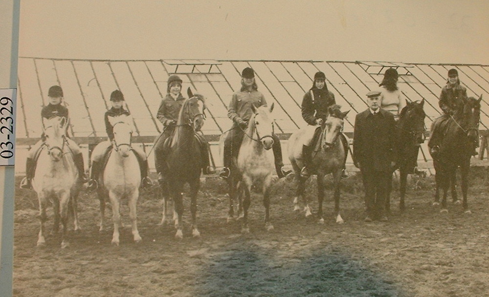 Groepen paardrijsters met hun begeleiders