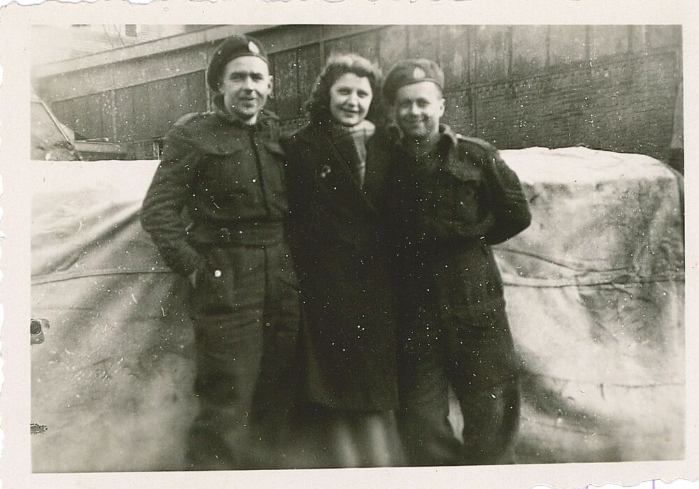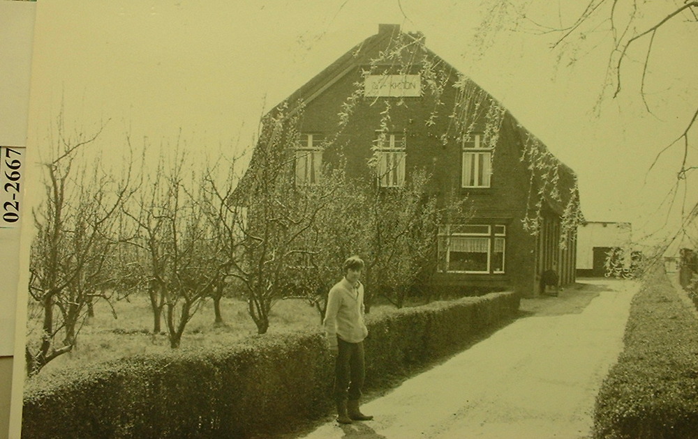 De tweeling Jan en Annie Beelen bij hun ouderlijk huis