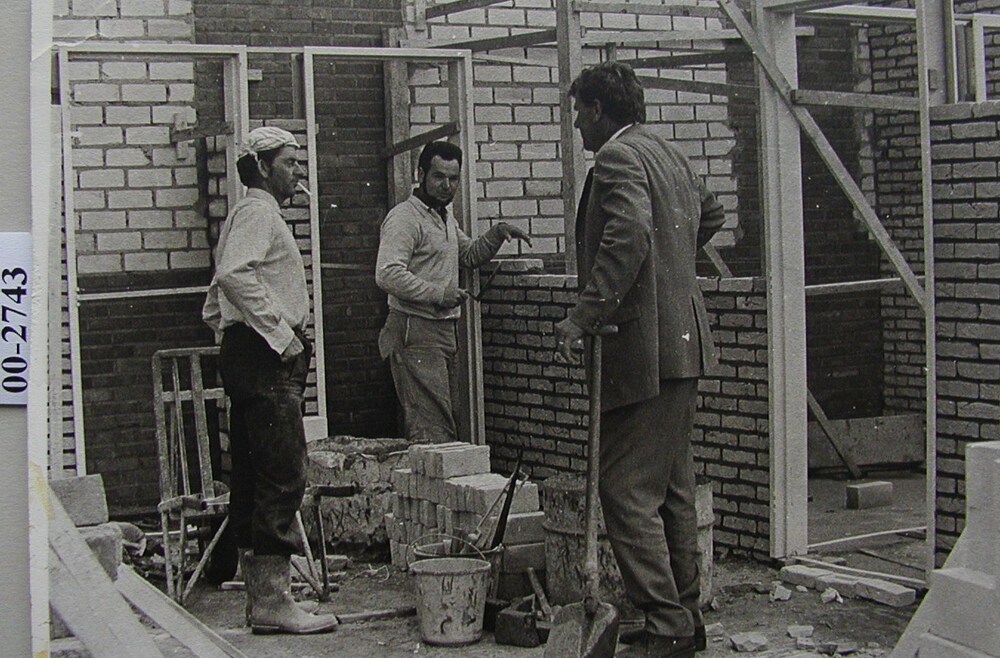Stel metselaars aan het werk in de bouw Herman Meeuw...