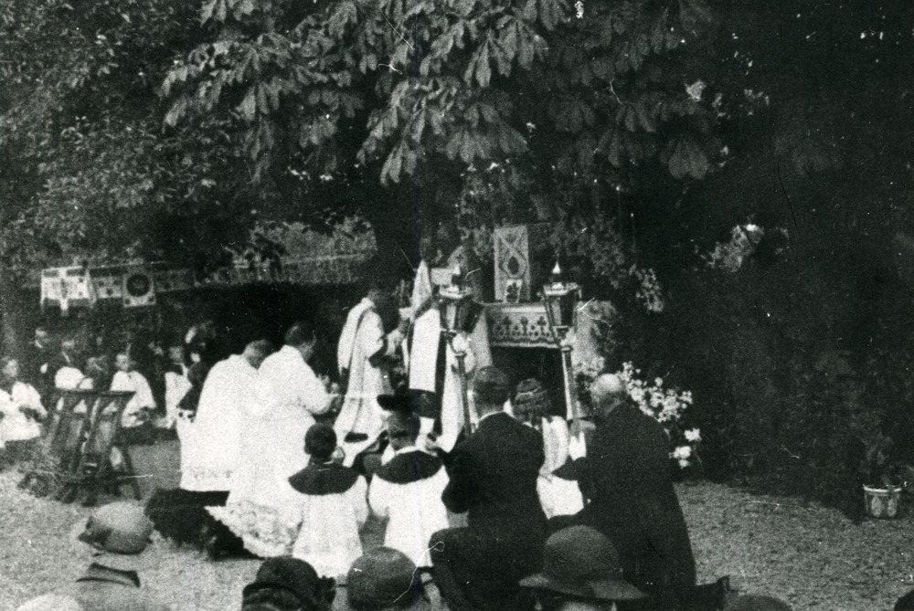 Zwart-wit foto van de processie in Herwen ca. 1930-1940