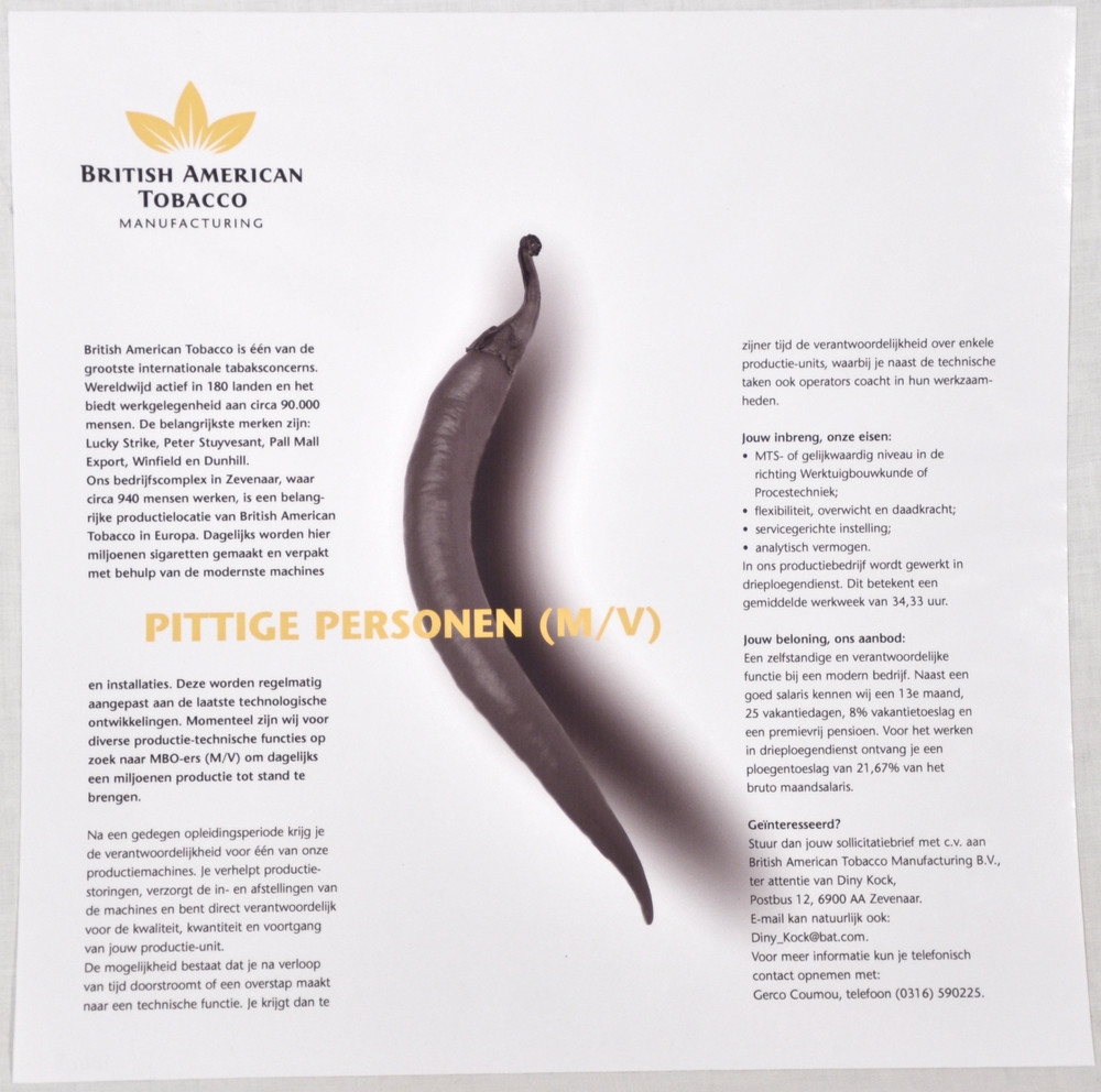Personeelsadvertentie op papier betreffende vacature...