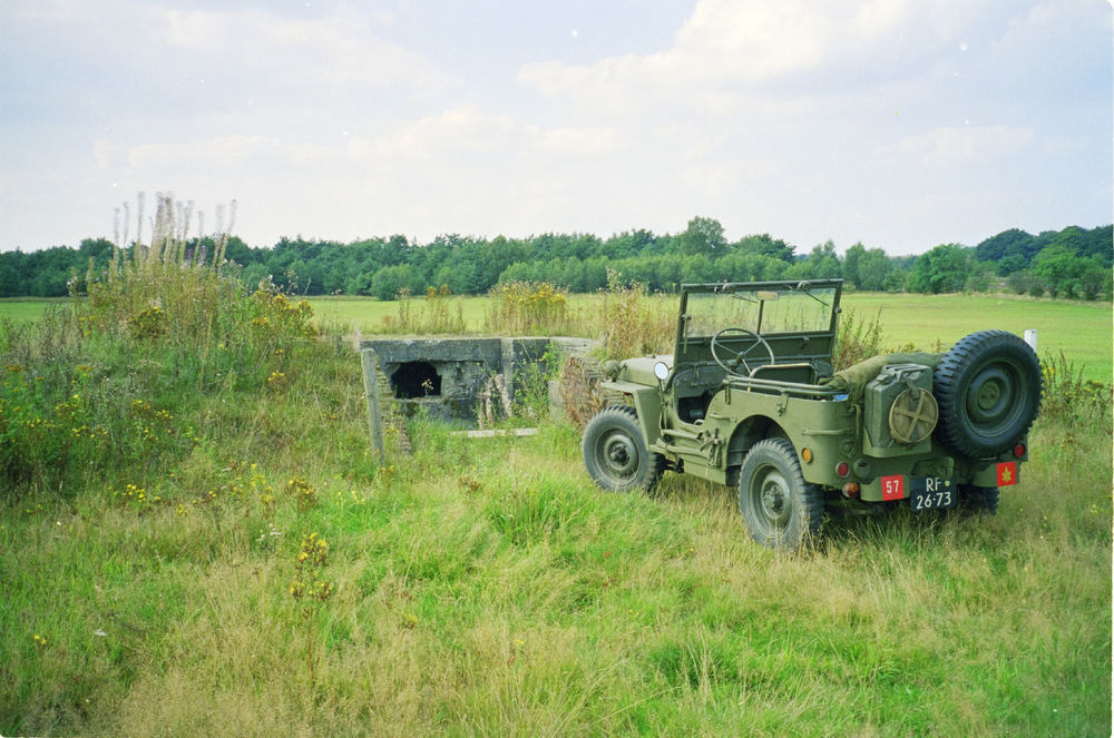 Jeep bij restanten van een FLAK stelling