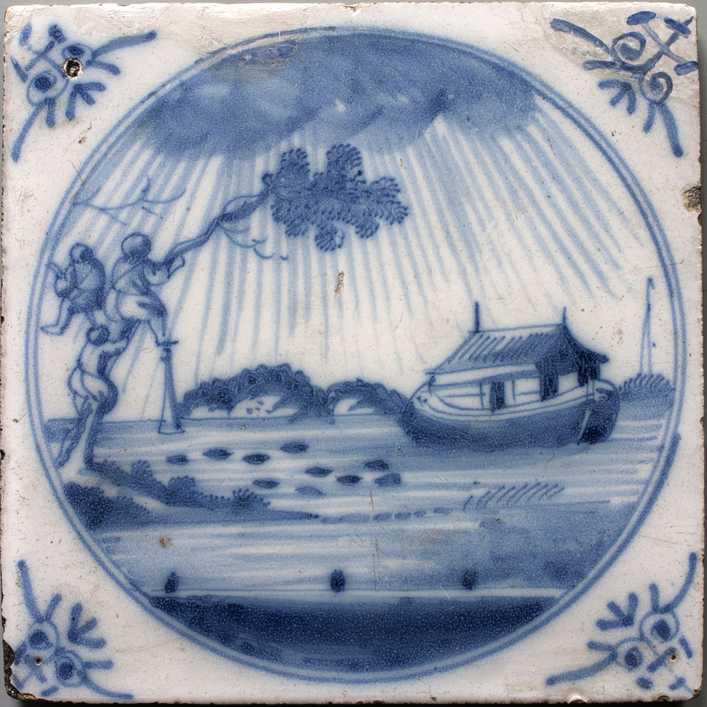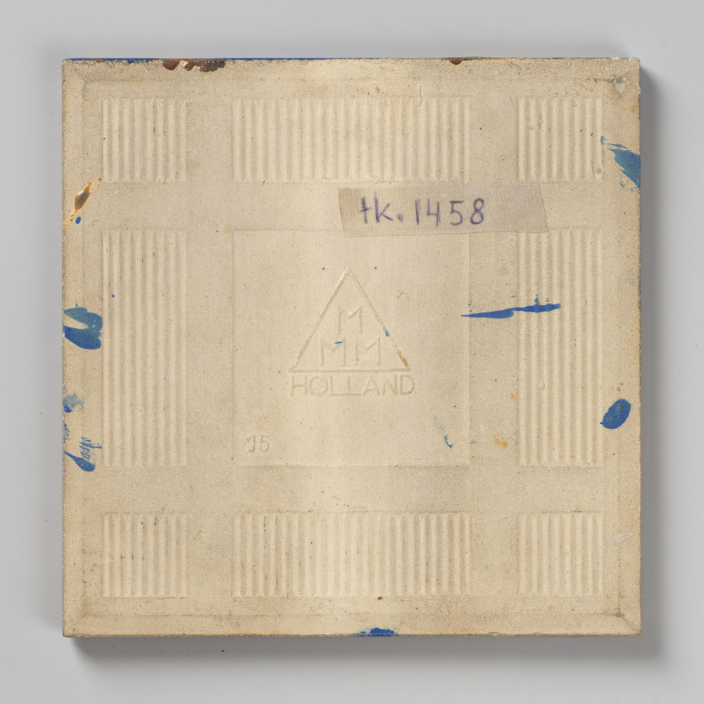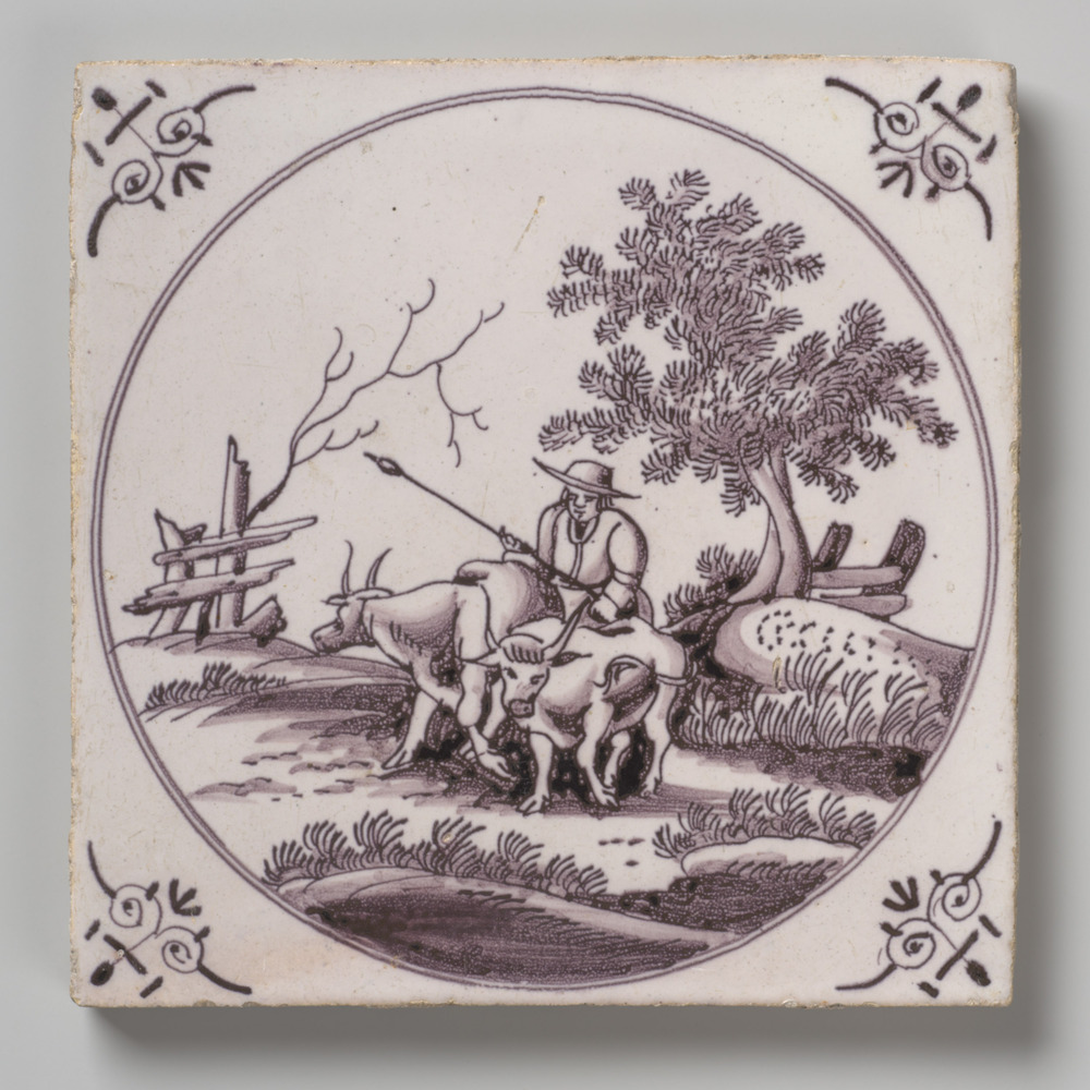 tegel van aardewerk met tinglazuur, voorstellende: m...