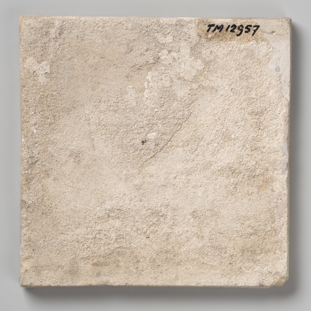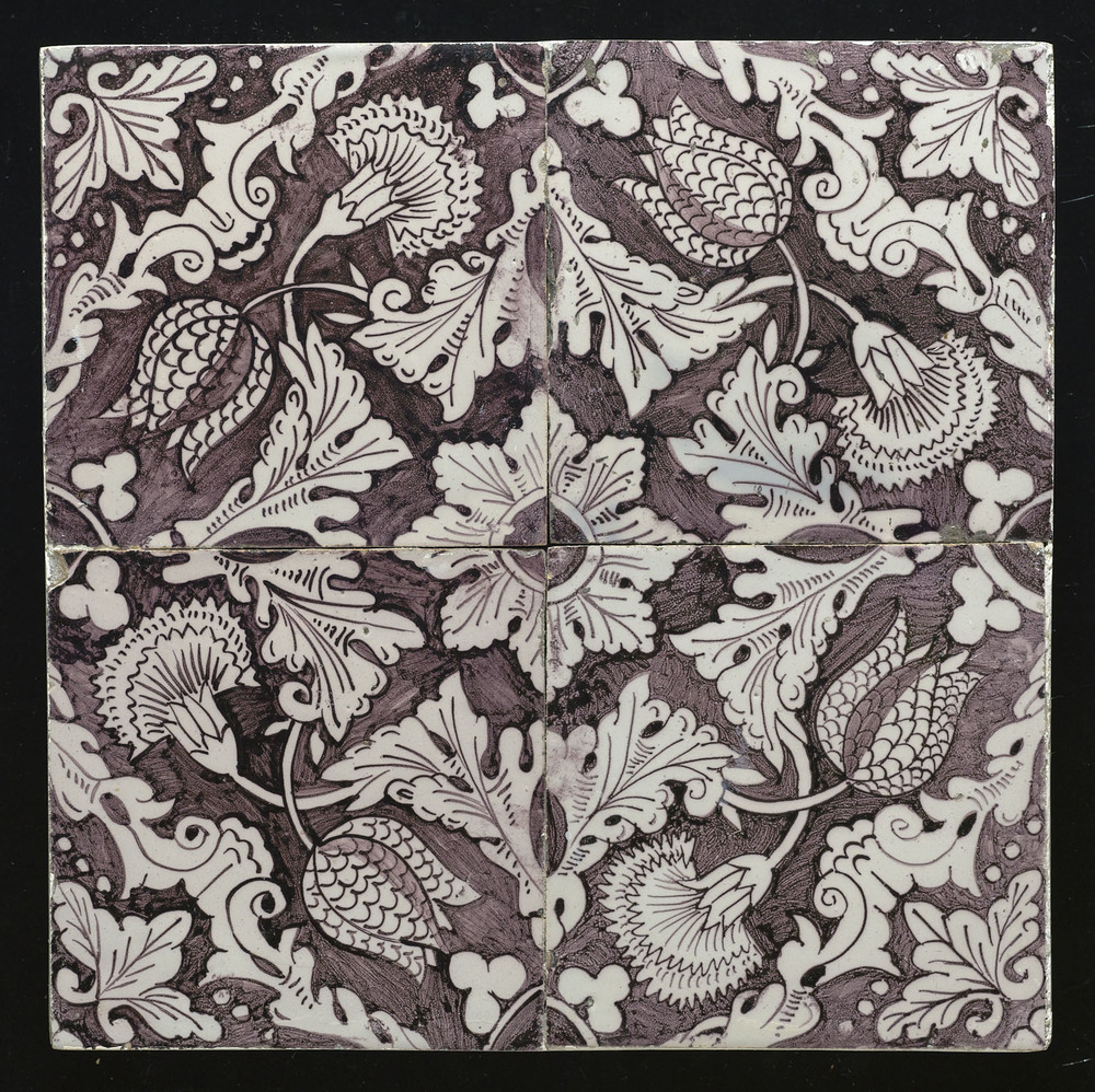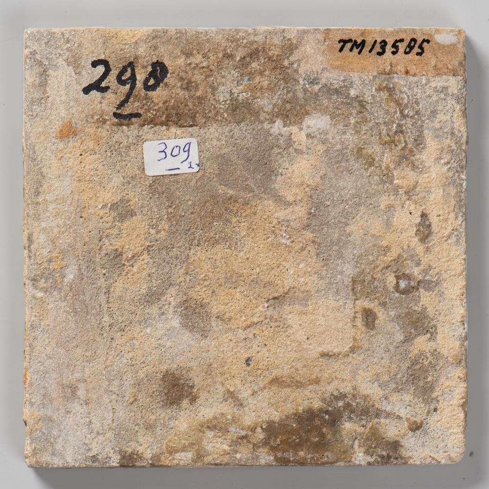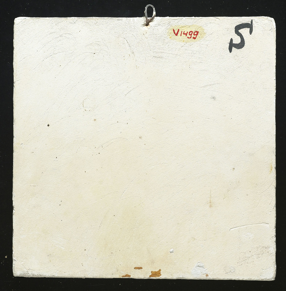 tegel van keramiek met tinglazuur, voorstellende: ze...