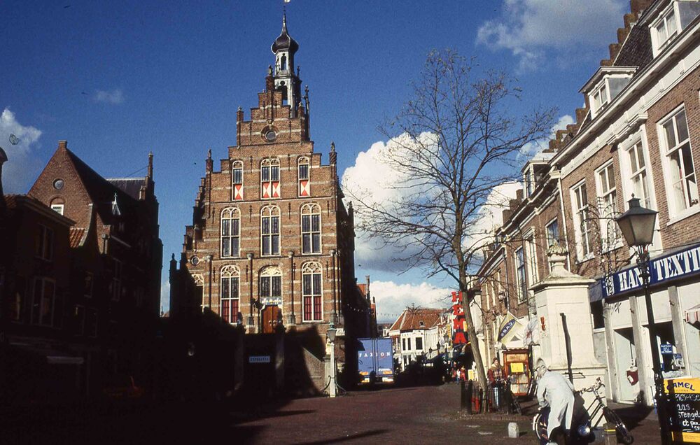 Stadsgids Lammert Postma met een groep toeristen op ...