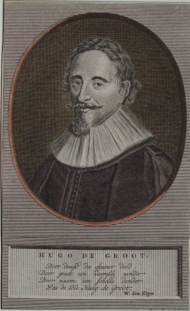 portret binnen een ovaal borststuk van Hugo de Groot...