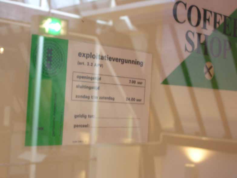 Exploitatievergunning, sticker Coffeeshop