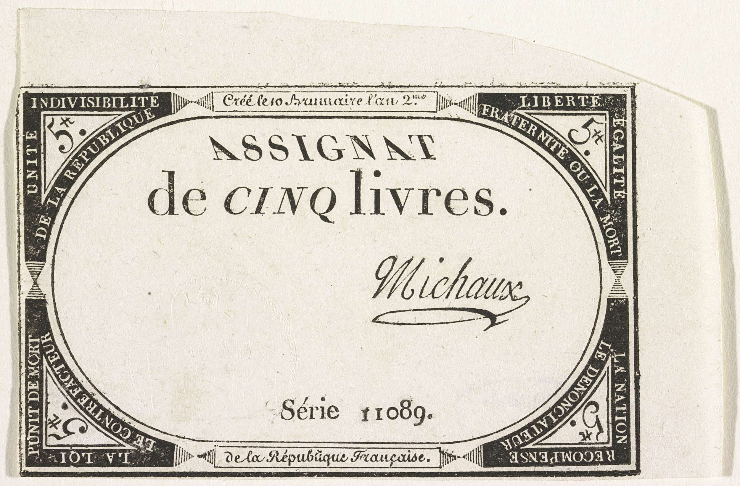 Asignaat van 5 livres, 1793-1794
