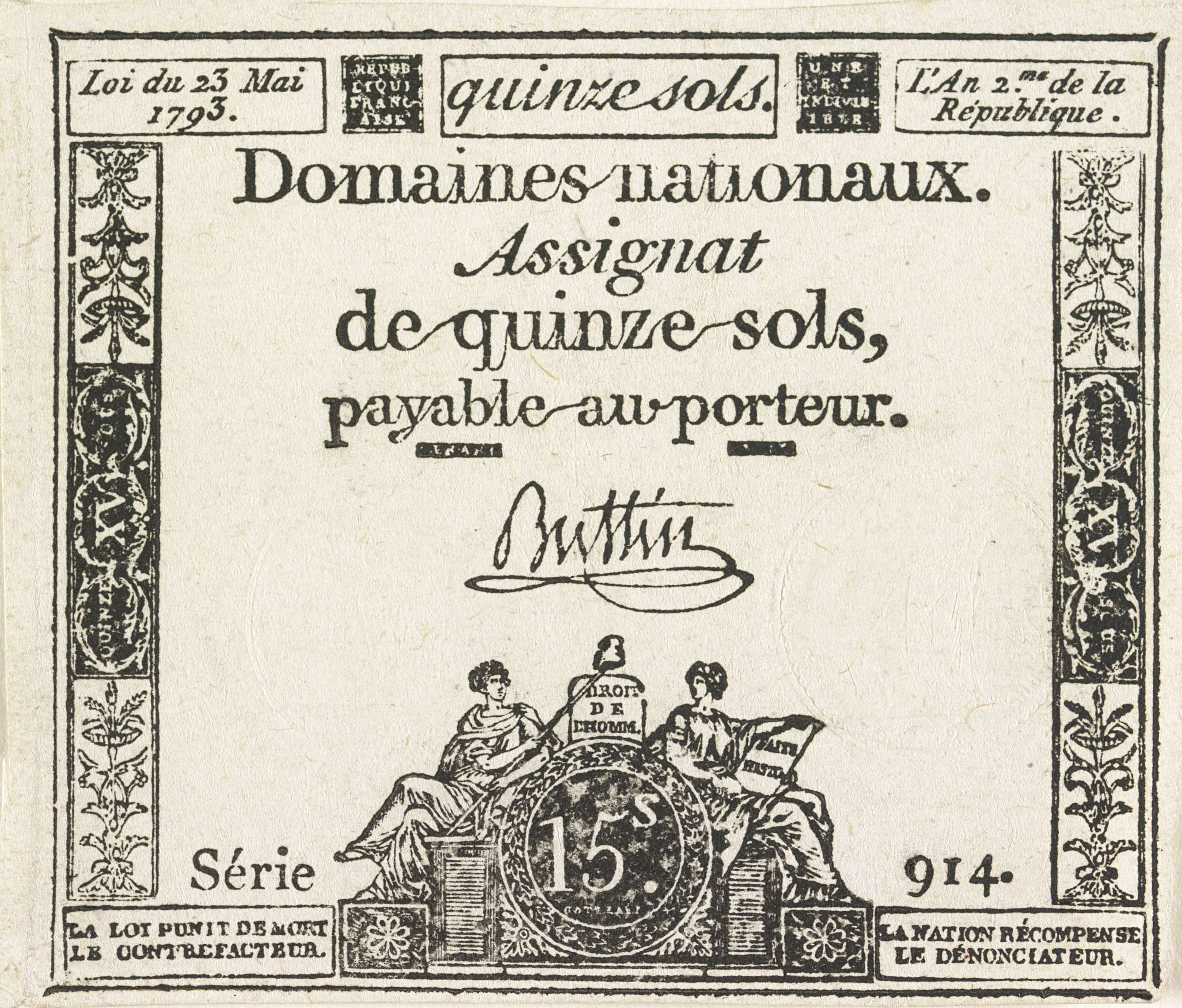 Asignaat van 15 sols, 1793