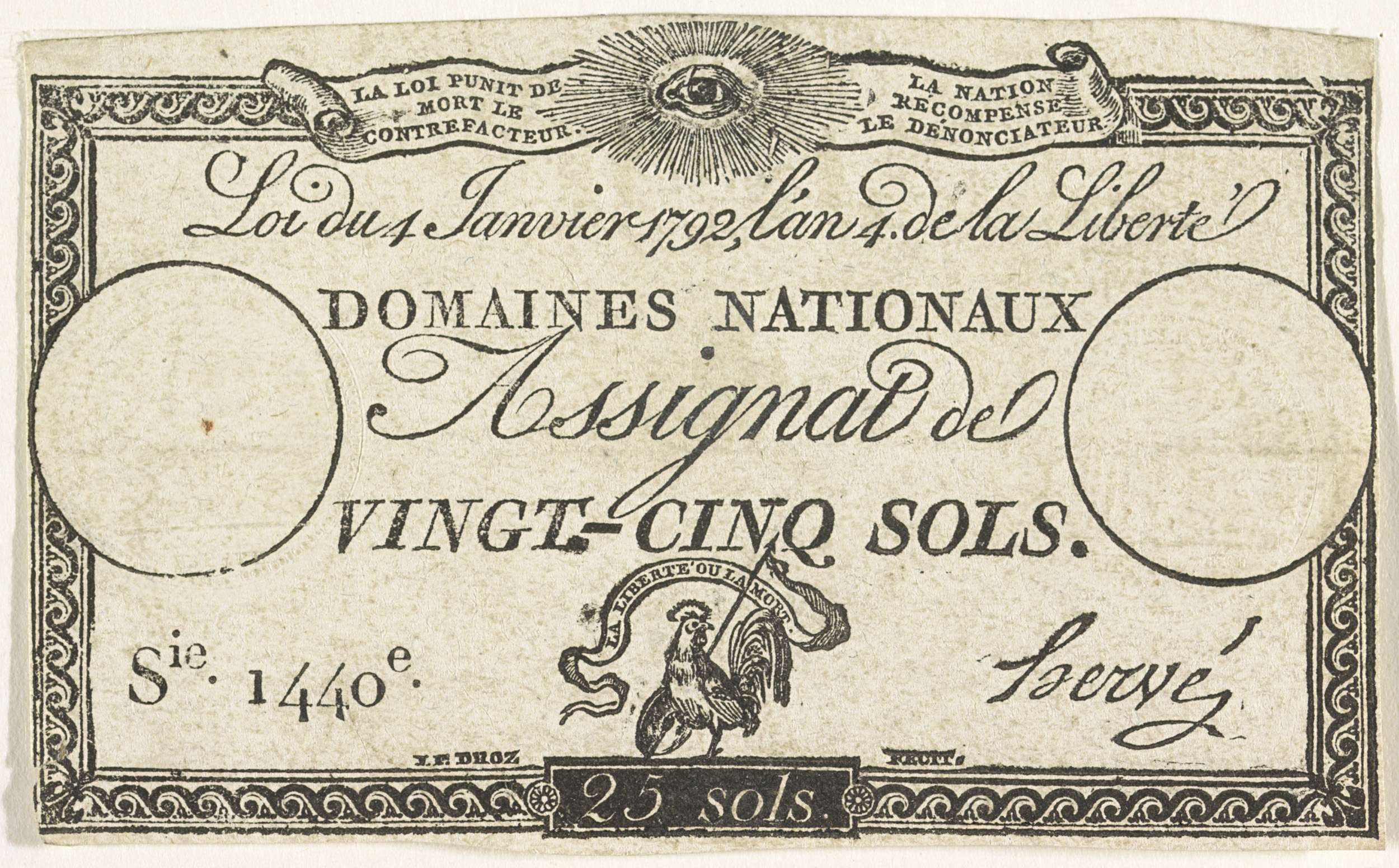 Assignaat van 25 sols, 1790-1796