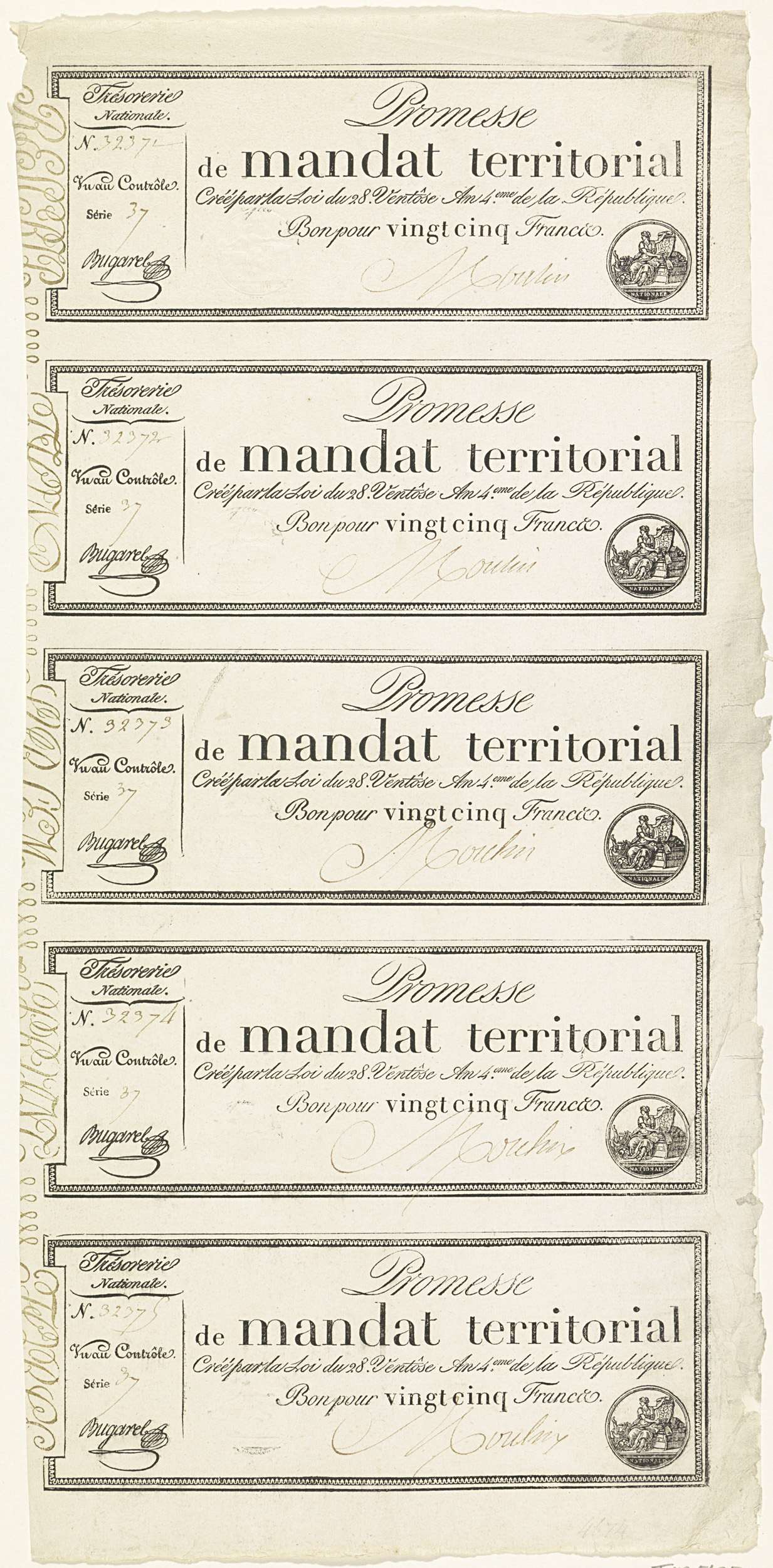 Vijf promessen van 25 frank, 1795-1796