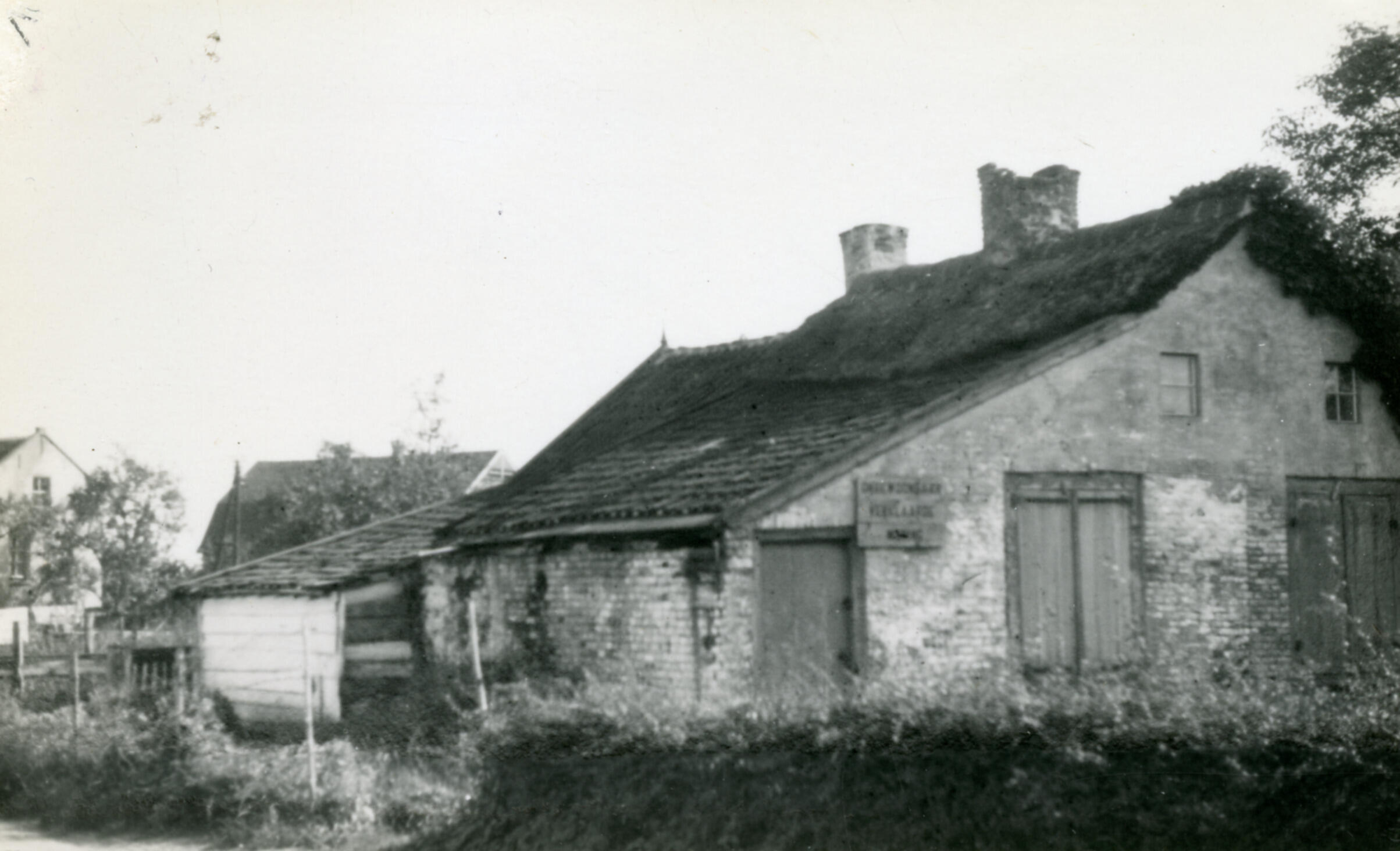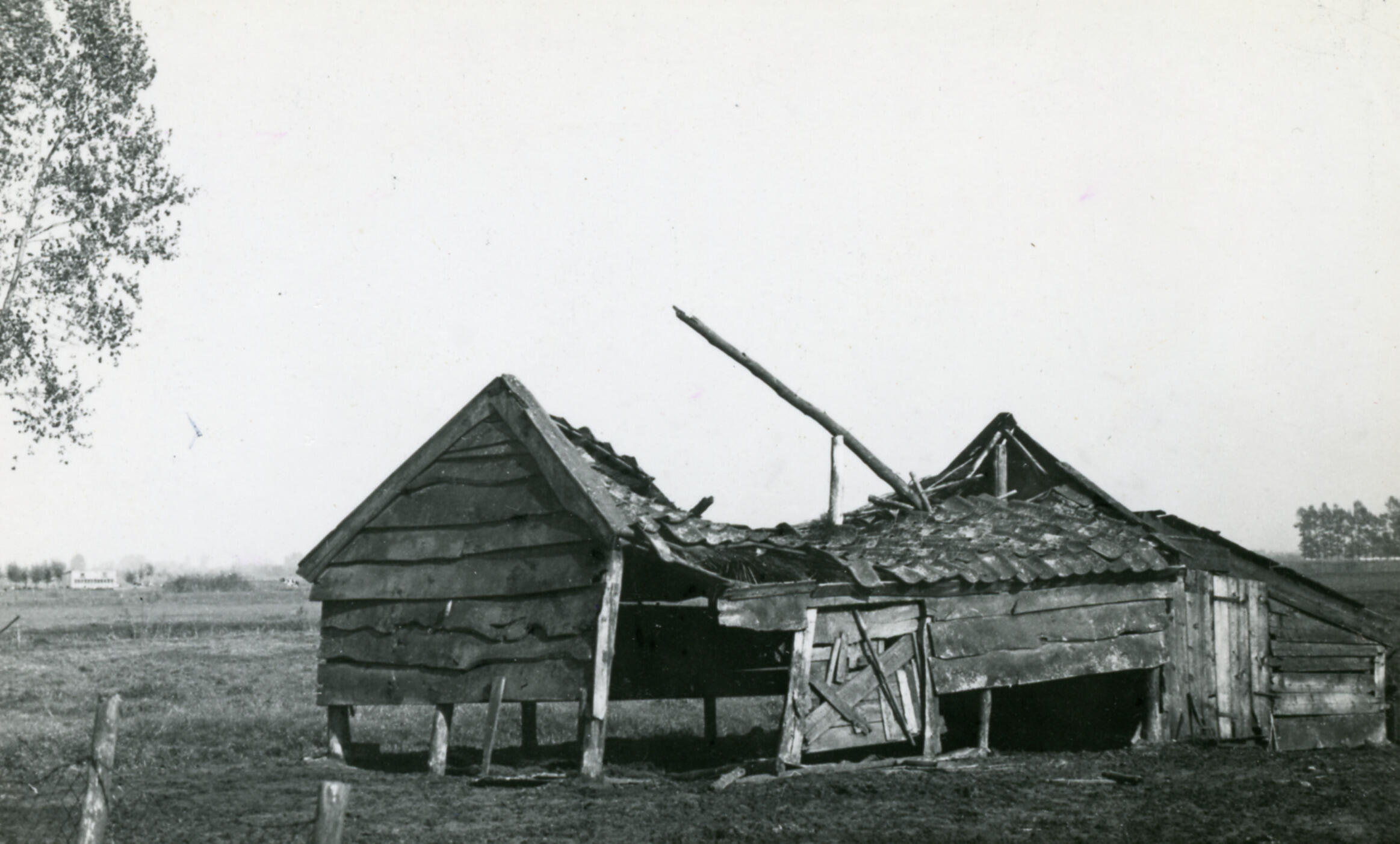 Vervallen schuur, Veenendaal, 1937 (zwart-wit foto)