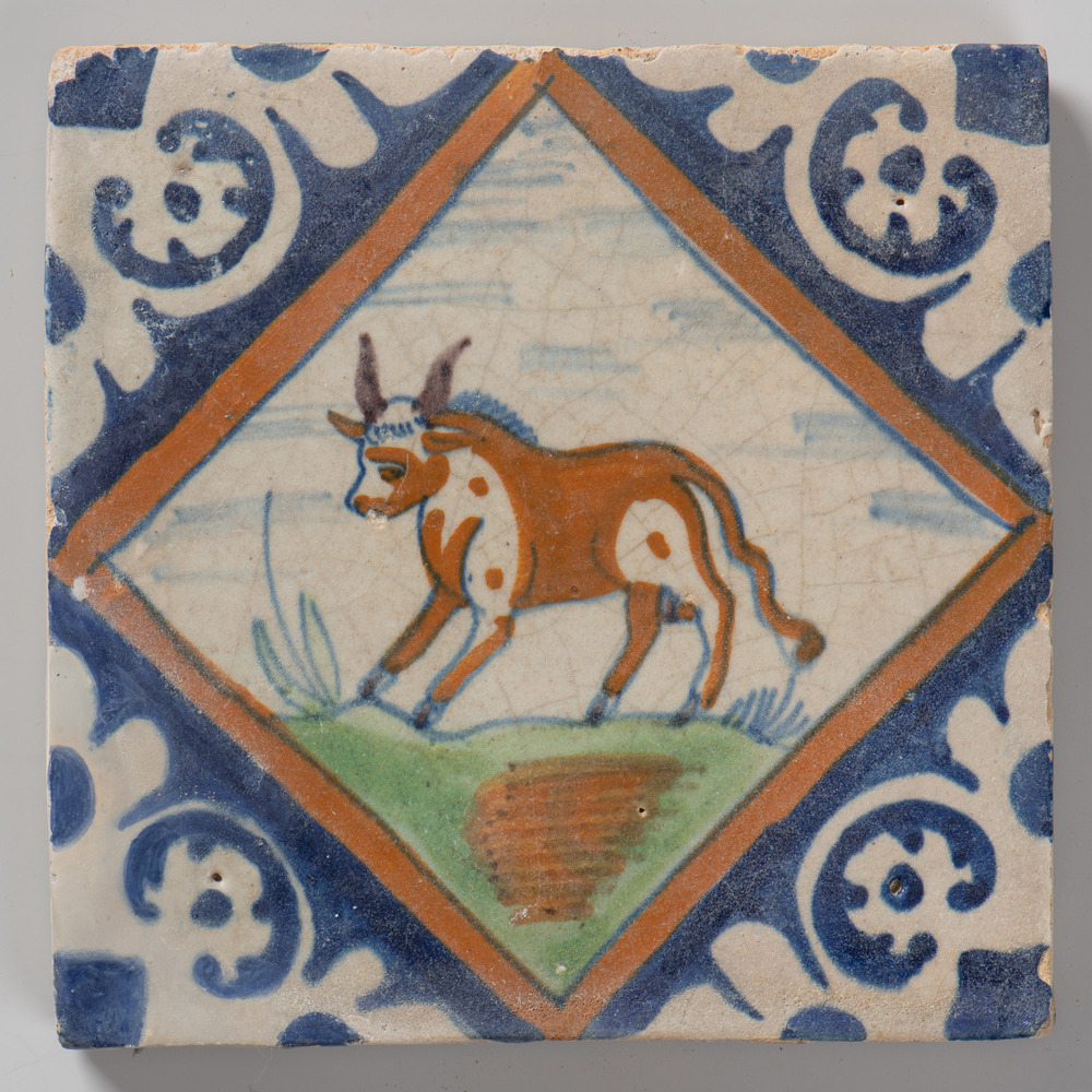 tegel van keramiek met tinglazuur, voorstellende: or...