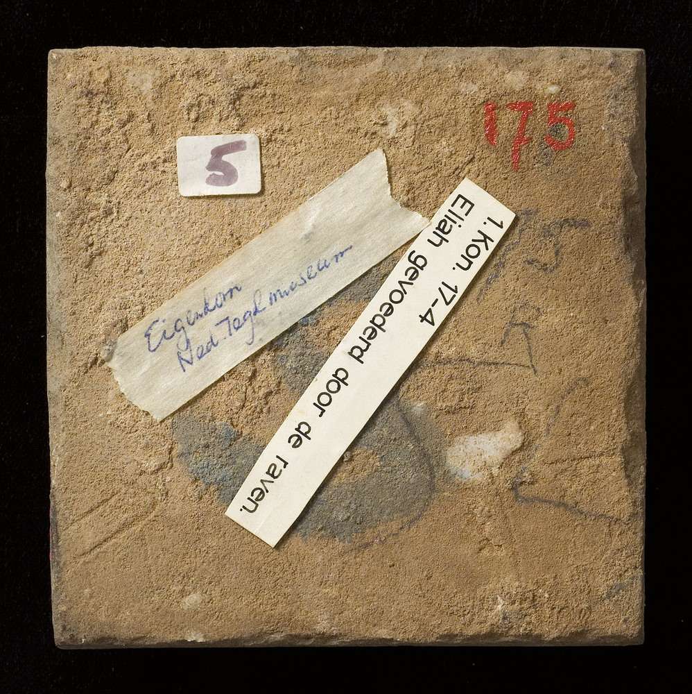 Tegel van keramiek met tinglazuur, voorstellende: El...