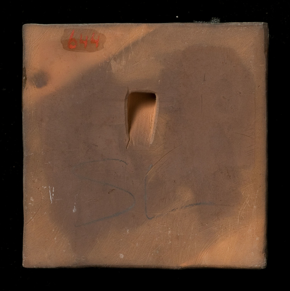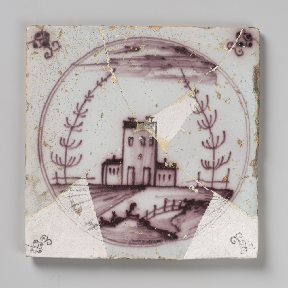 Tegel van keramiek met tinglazuur, voorstellende: or...