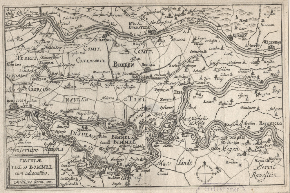 Topografische kaart gebieden tussen Maas, Waal en Le...