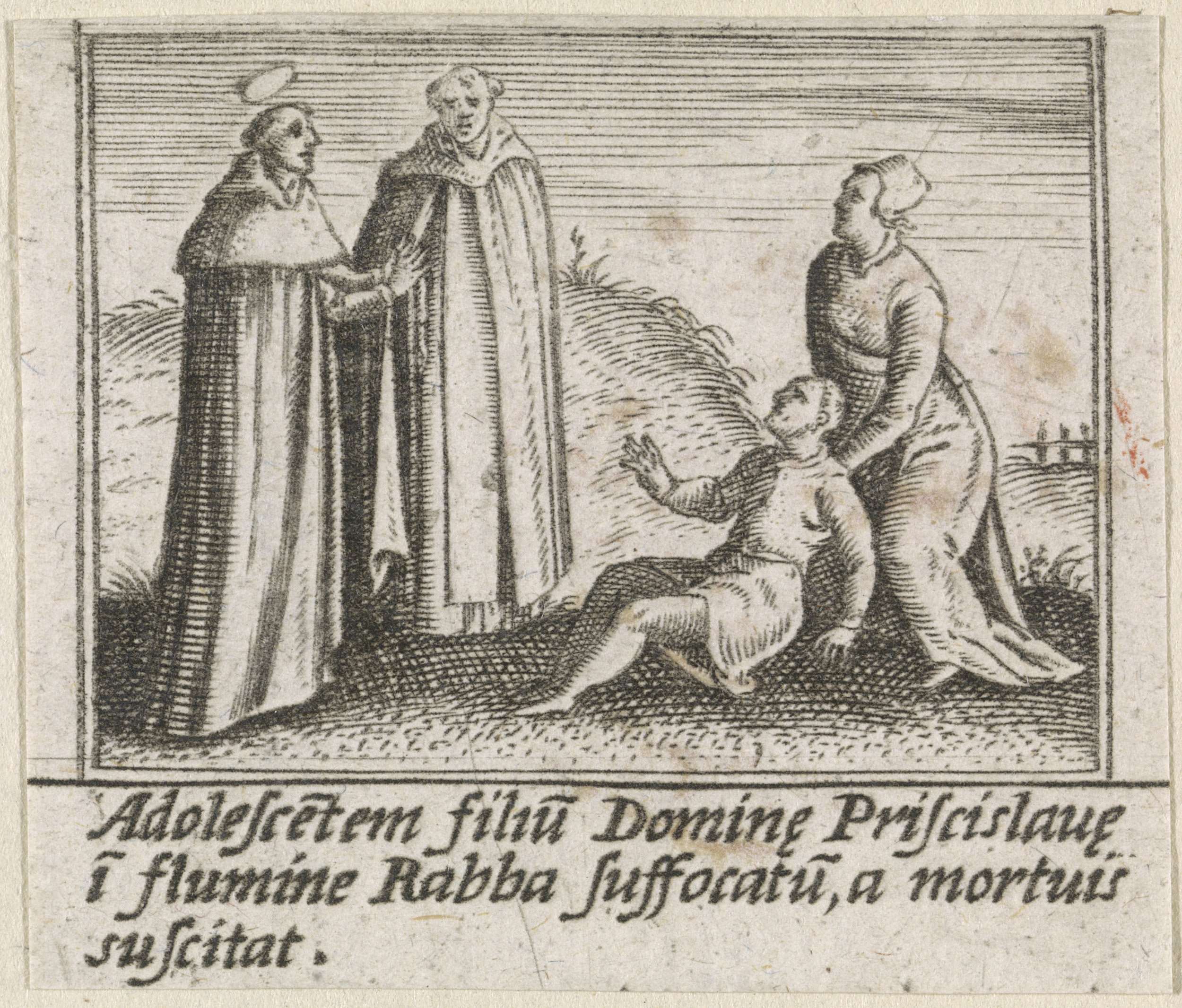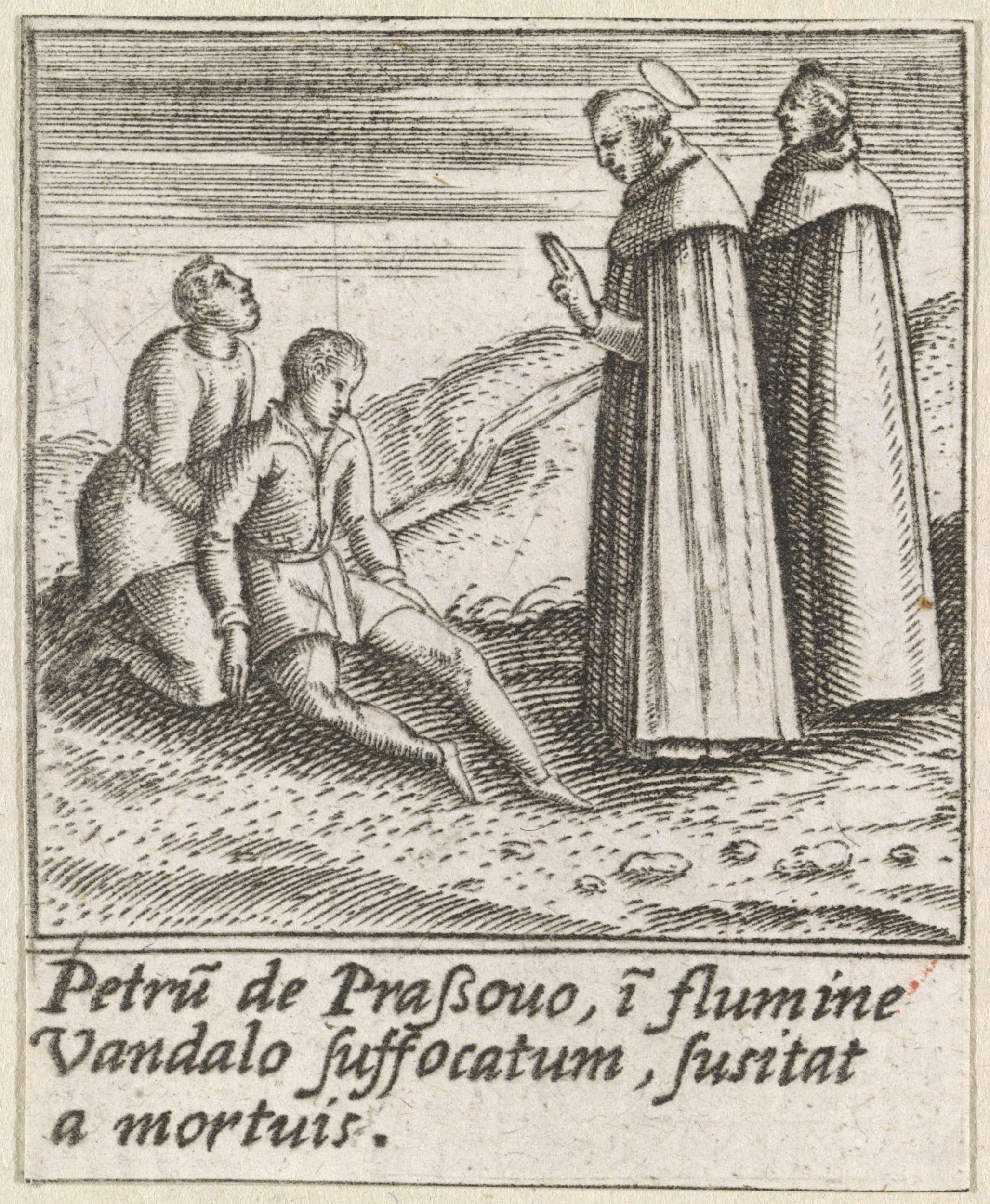 Twee monniken en de Heilige Hyacinthus van Polen