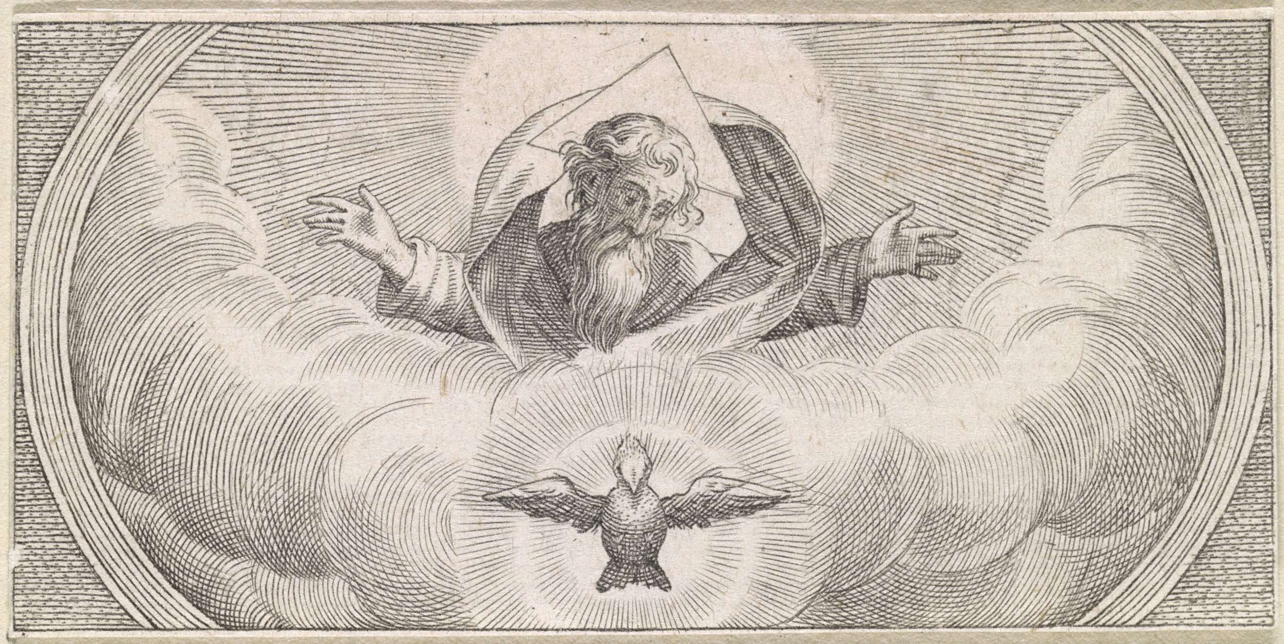 Heilige Geest als duif in een stralenkrans, omringd ...
