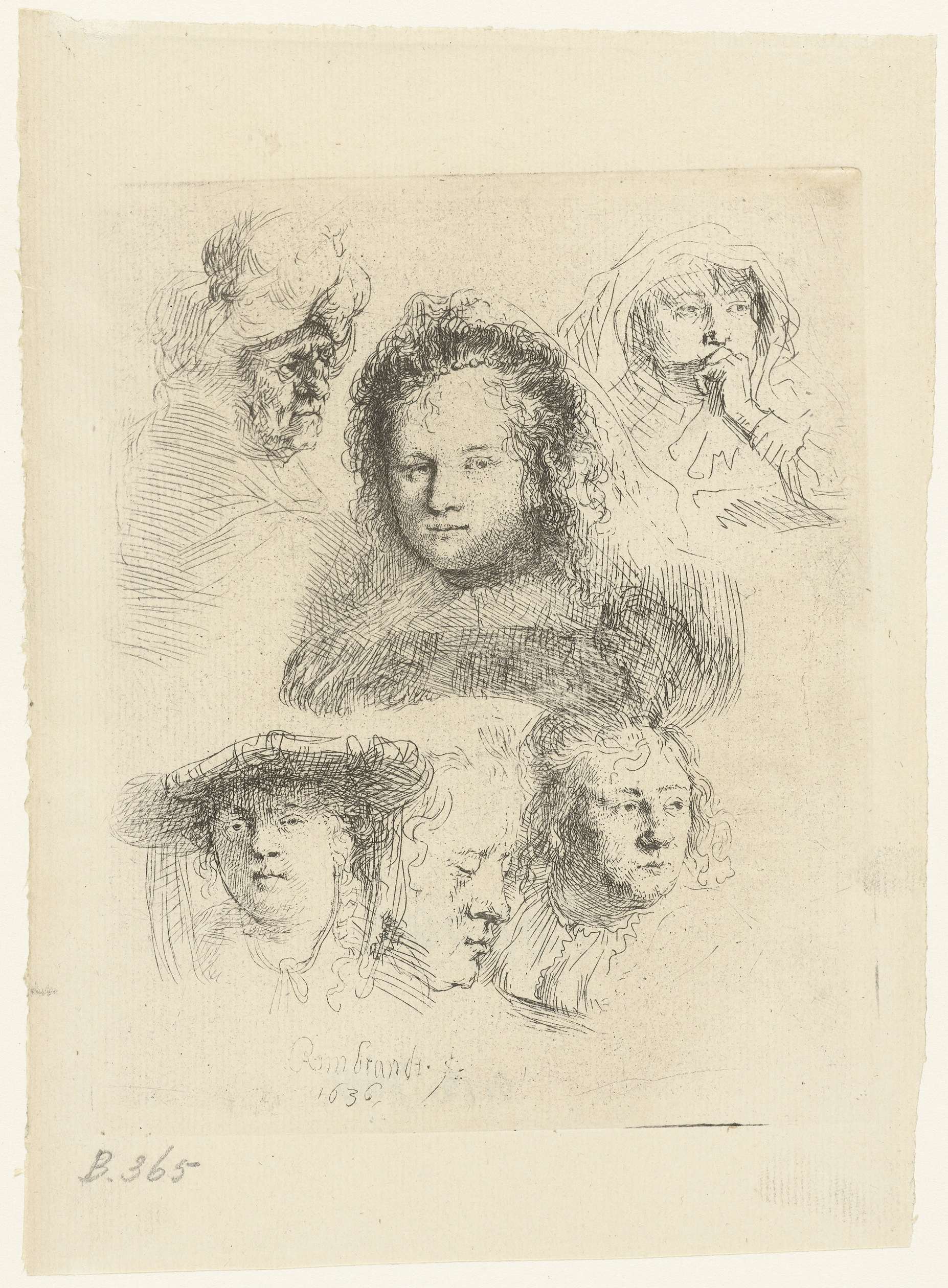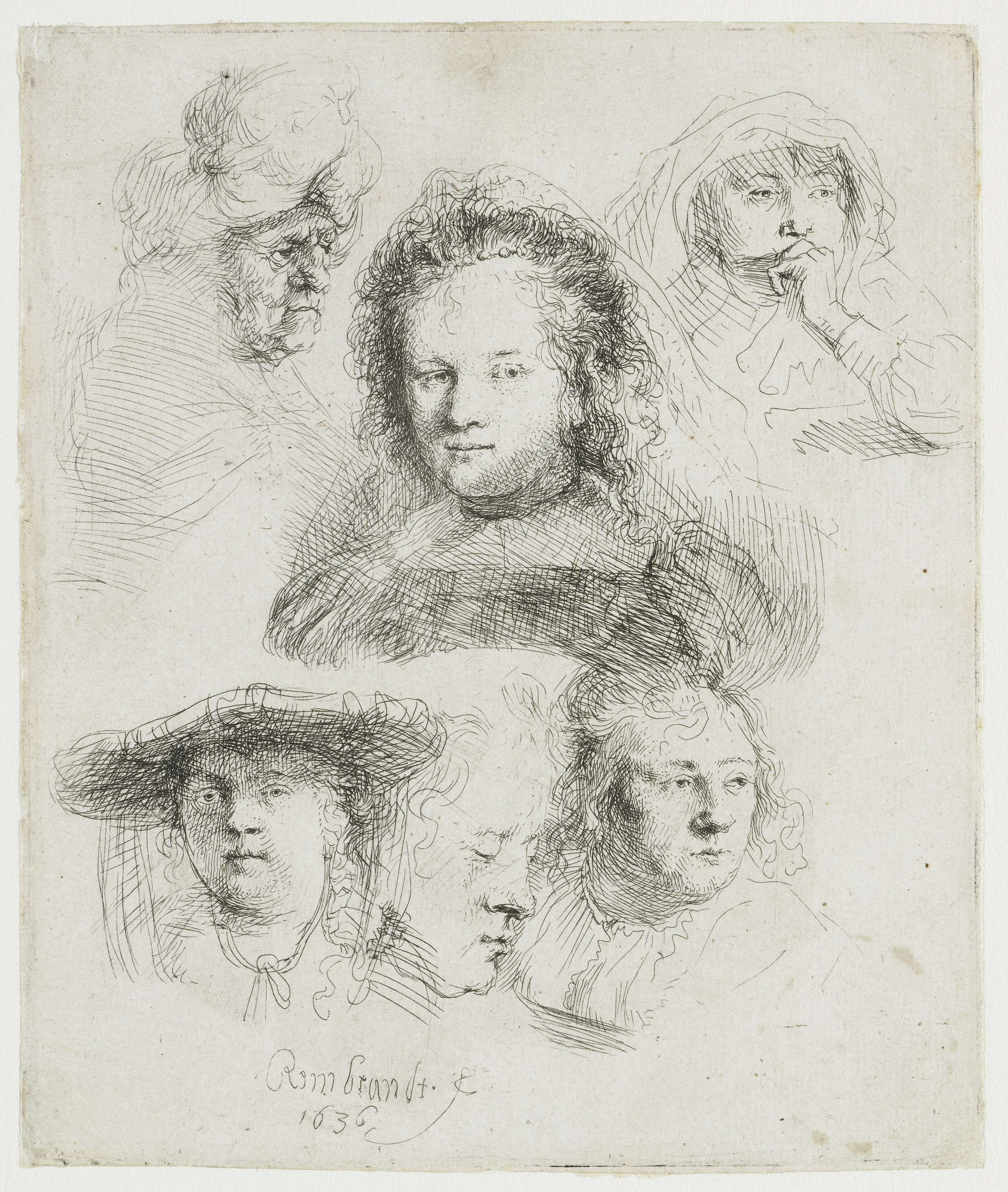 Sheet of studies: head of the artist, a beggar coupl...