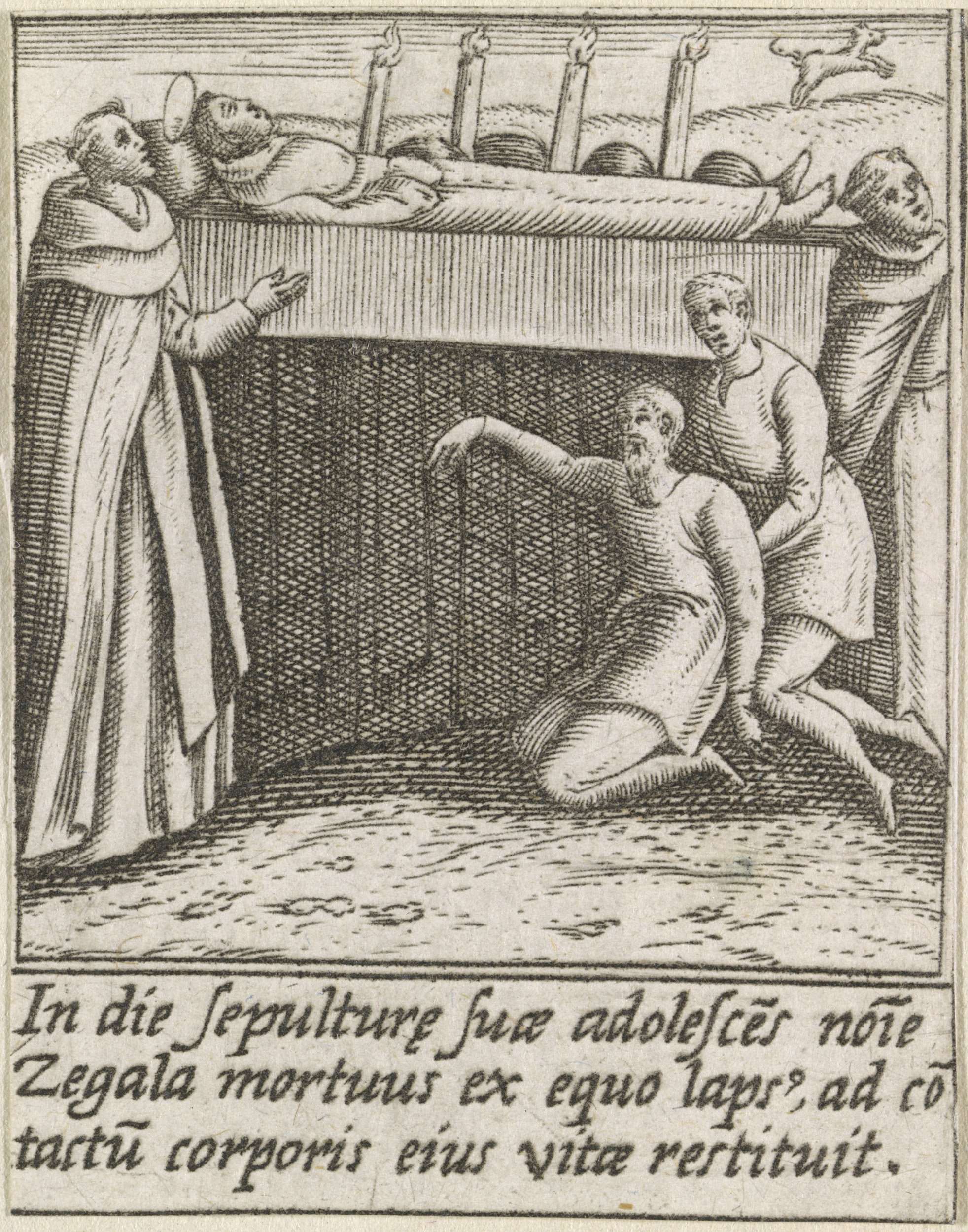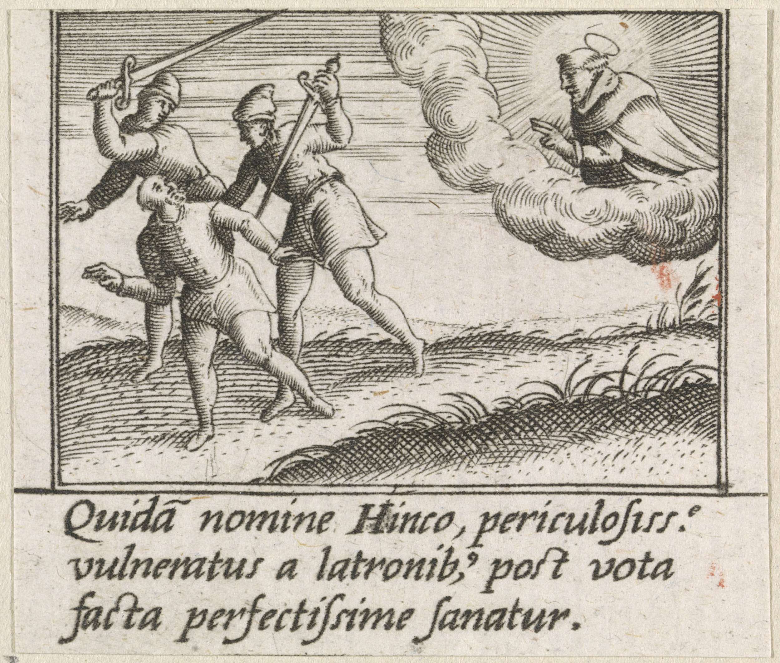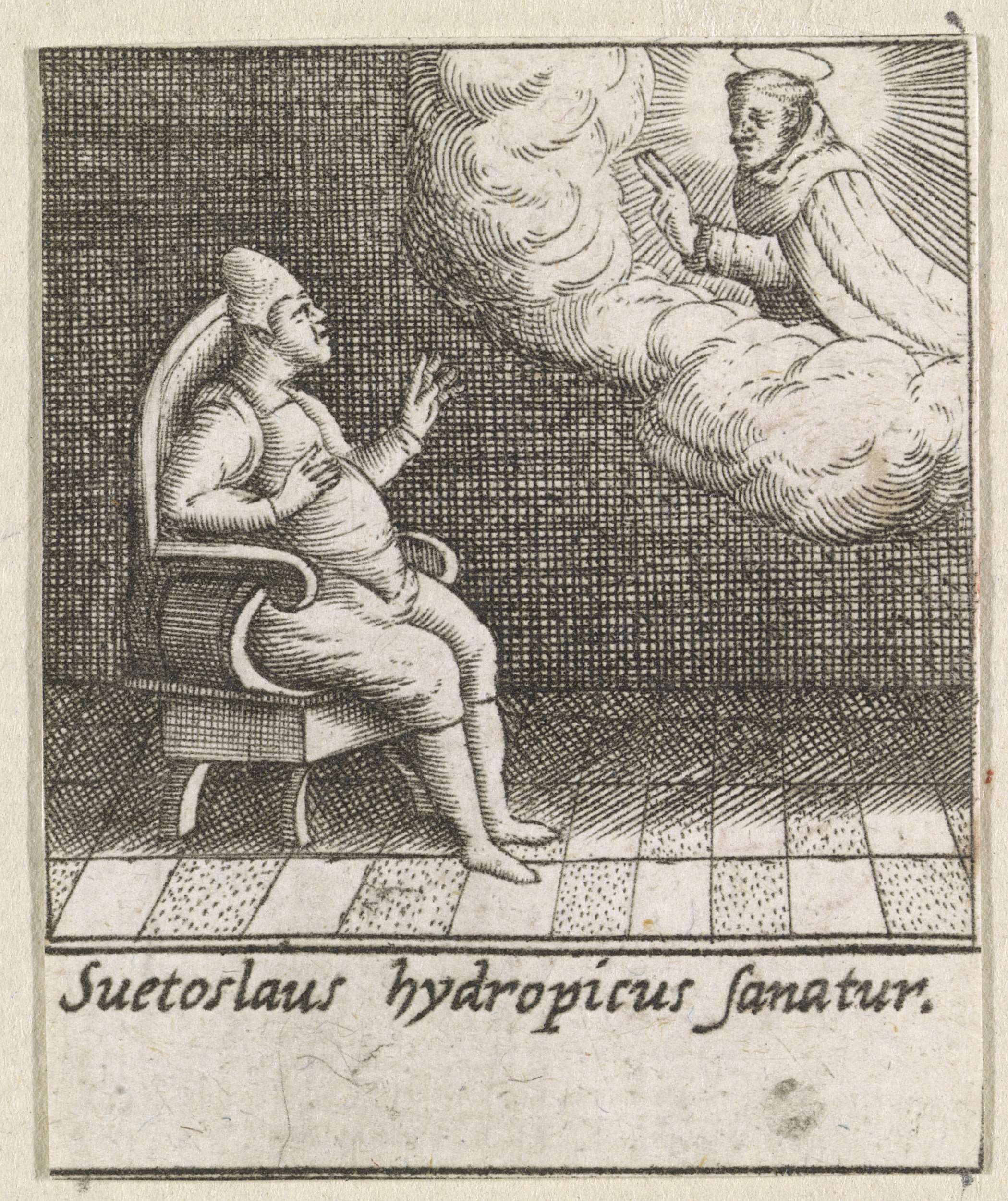Heilige Hyacinthus van Polen ontmoet een liggende man