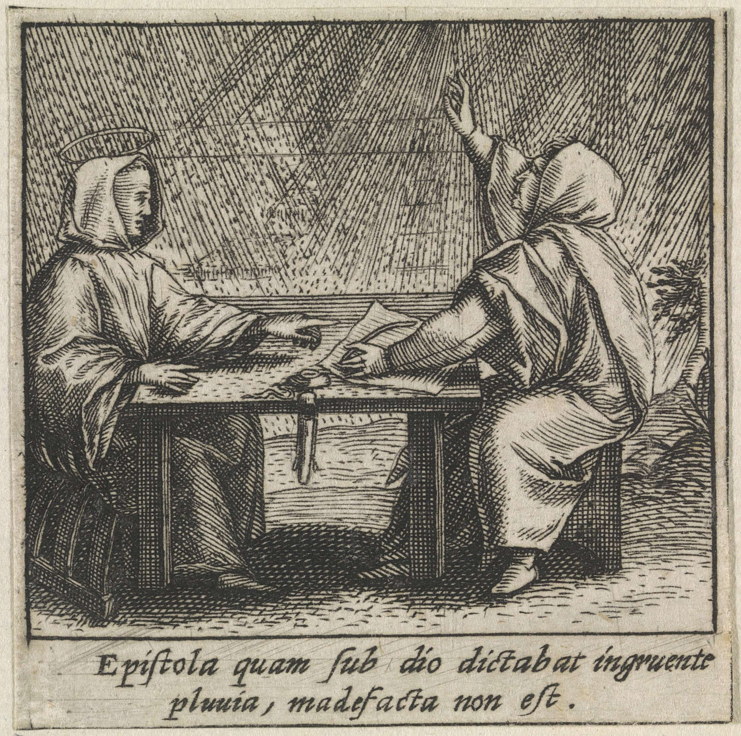 Heilige Bernardus van Clairvaux weert de regen