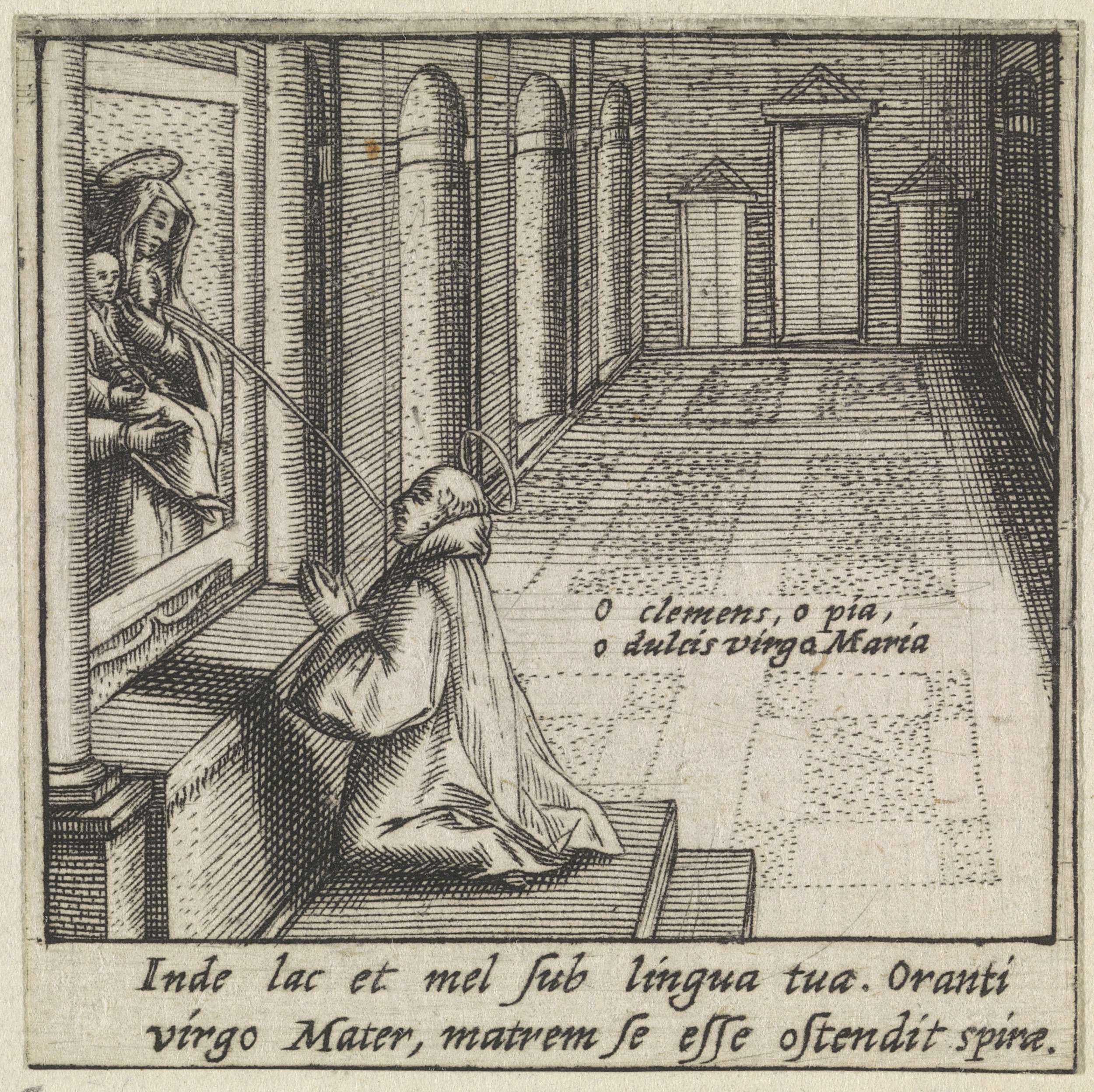 Heilige Bernardus van Clairvaux ontvangt in een visi...