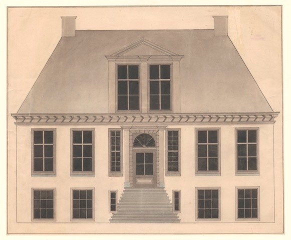 Gezicht op de voorgevel van Stania-State te Oentsjerk