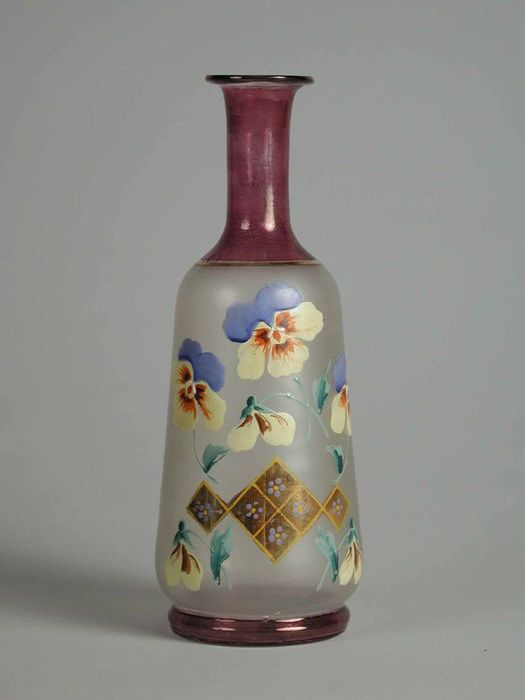 Karaf van borrelservies, blank glas, deels mat, besc...