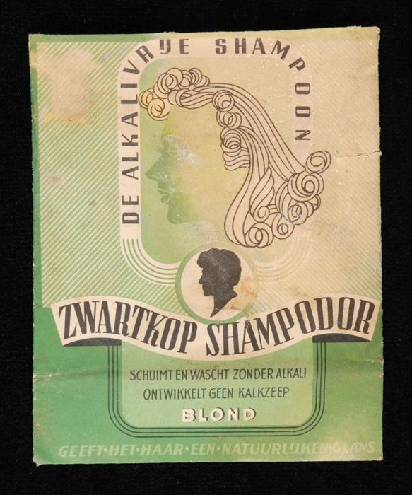 Papieren zakje met shampoo, "ZWARTKOP SHAMPODOR / BL...