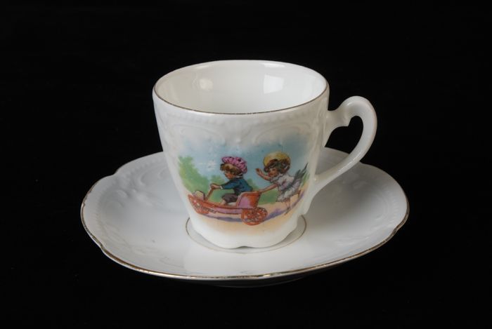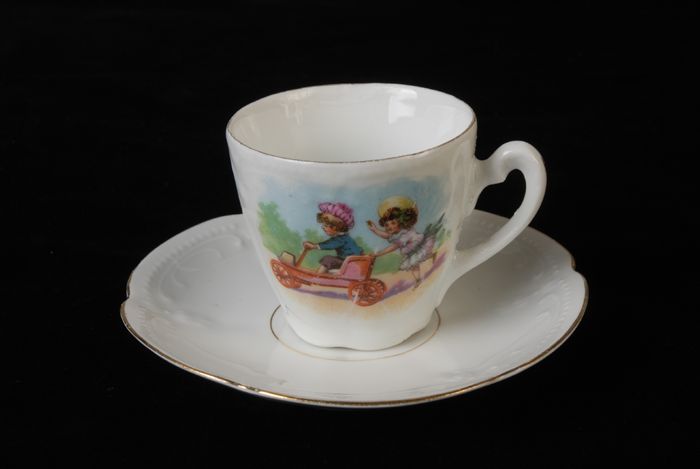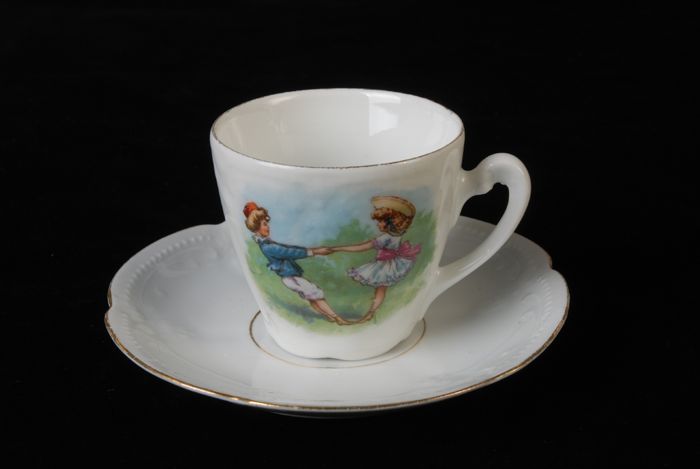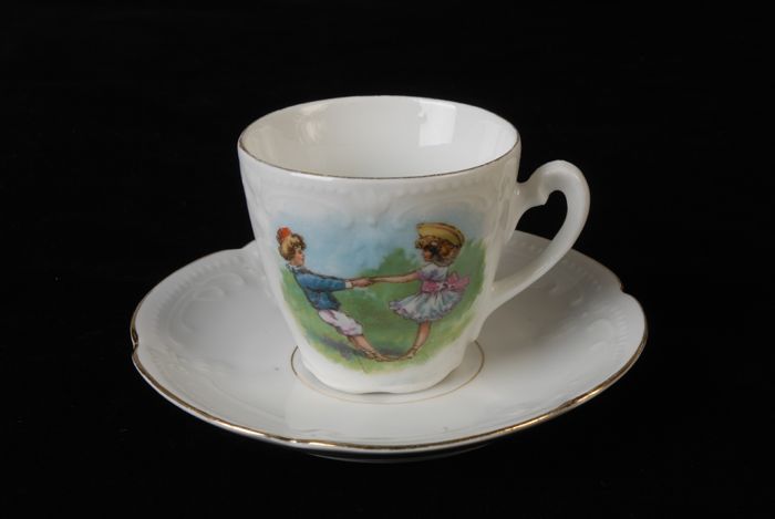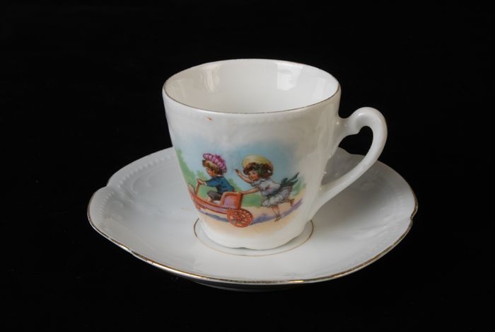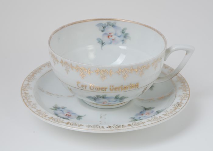 Witte kop en schotel met decoratie, ter gelegenheid ...