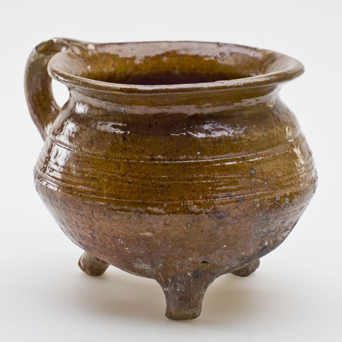 Aardewerk kookpot, kookkan met fijne draairillen op ...